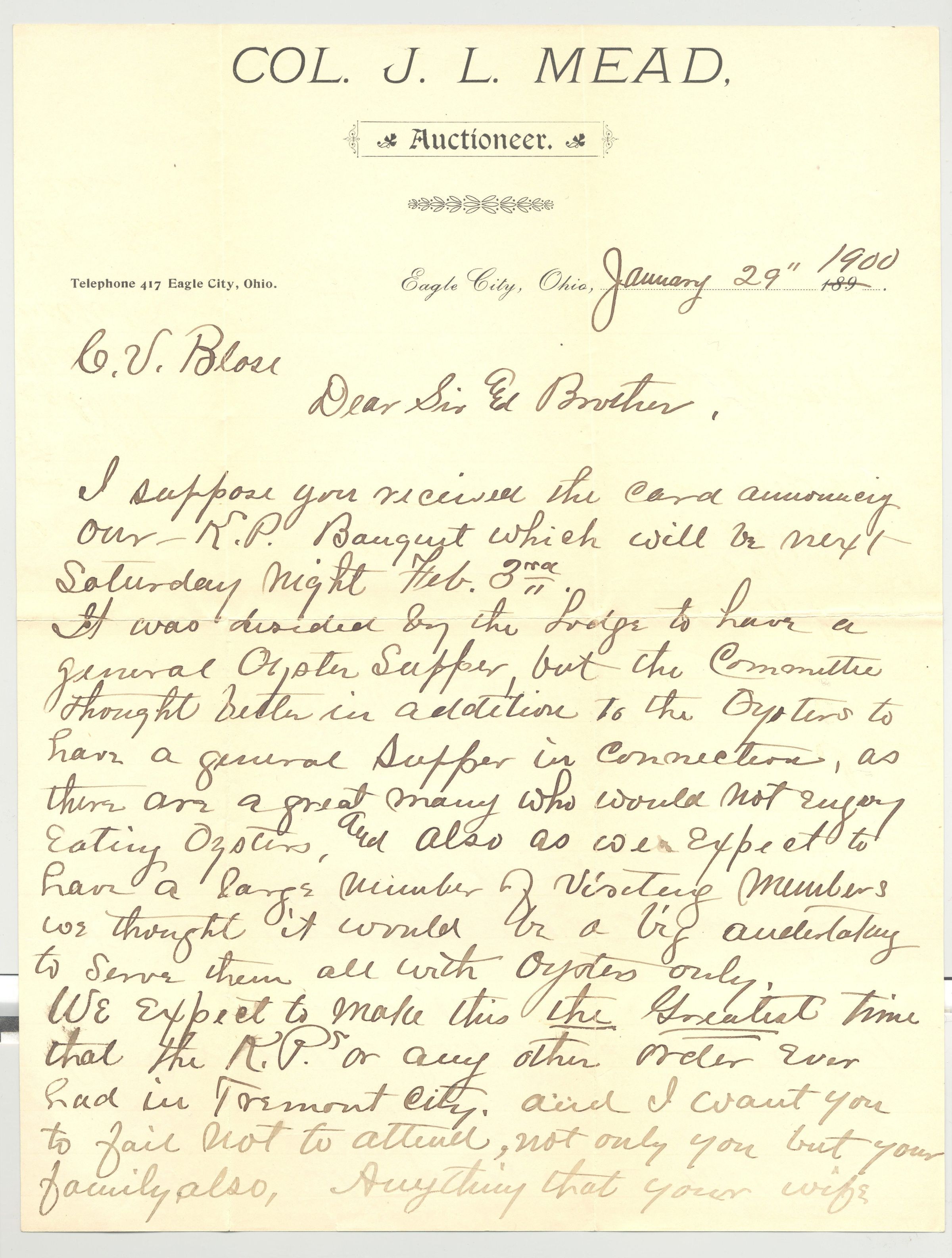 ENV, 1900, OH. COL. J.L. MEAD, EAGLE CITY, OHIO