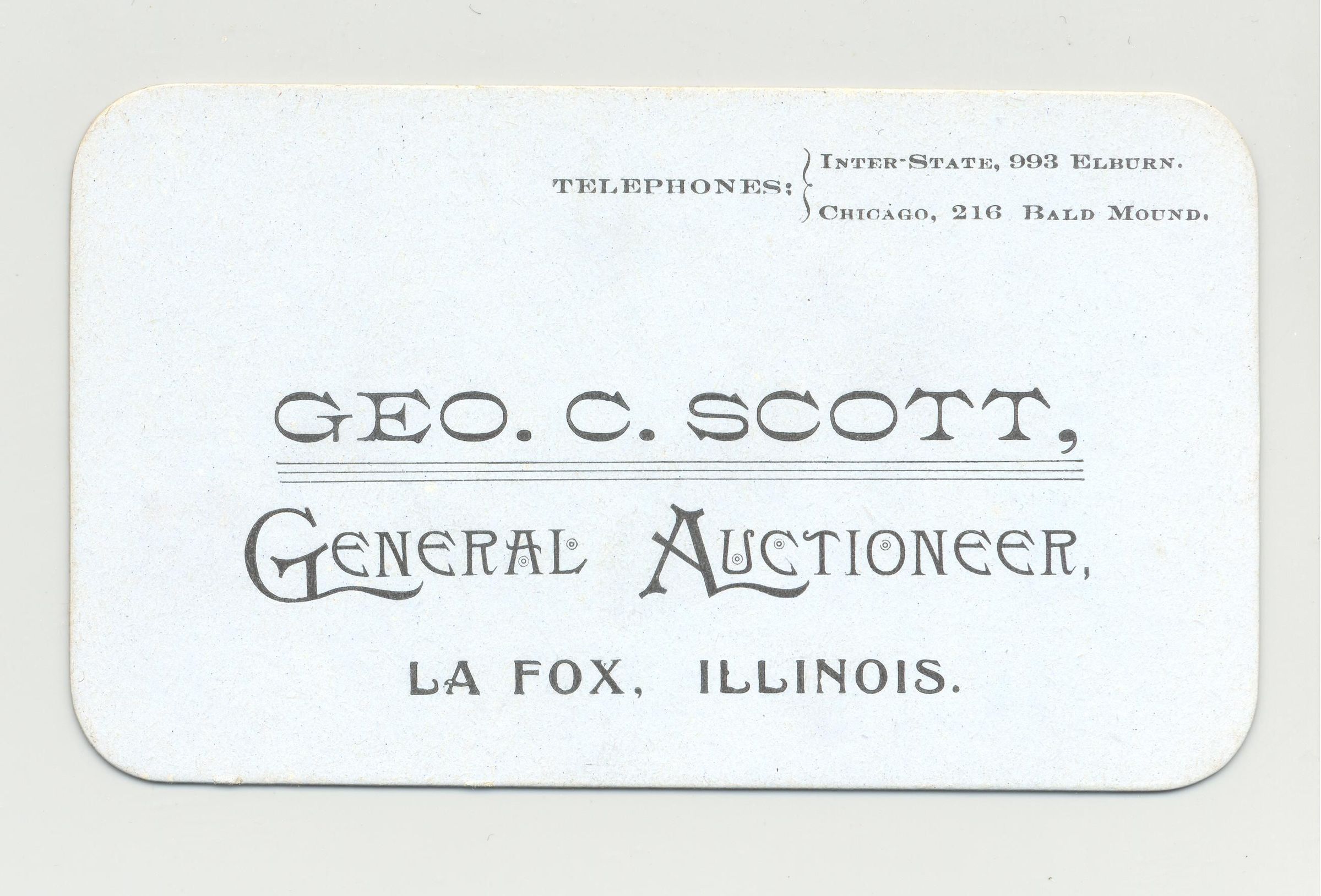 BSCD, IL. GEO. C. SCOTT, GENERAL AUCTIONEER, LA FOX, ILLINOIS