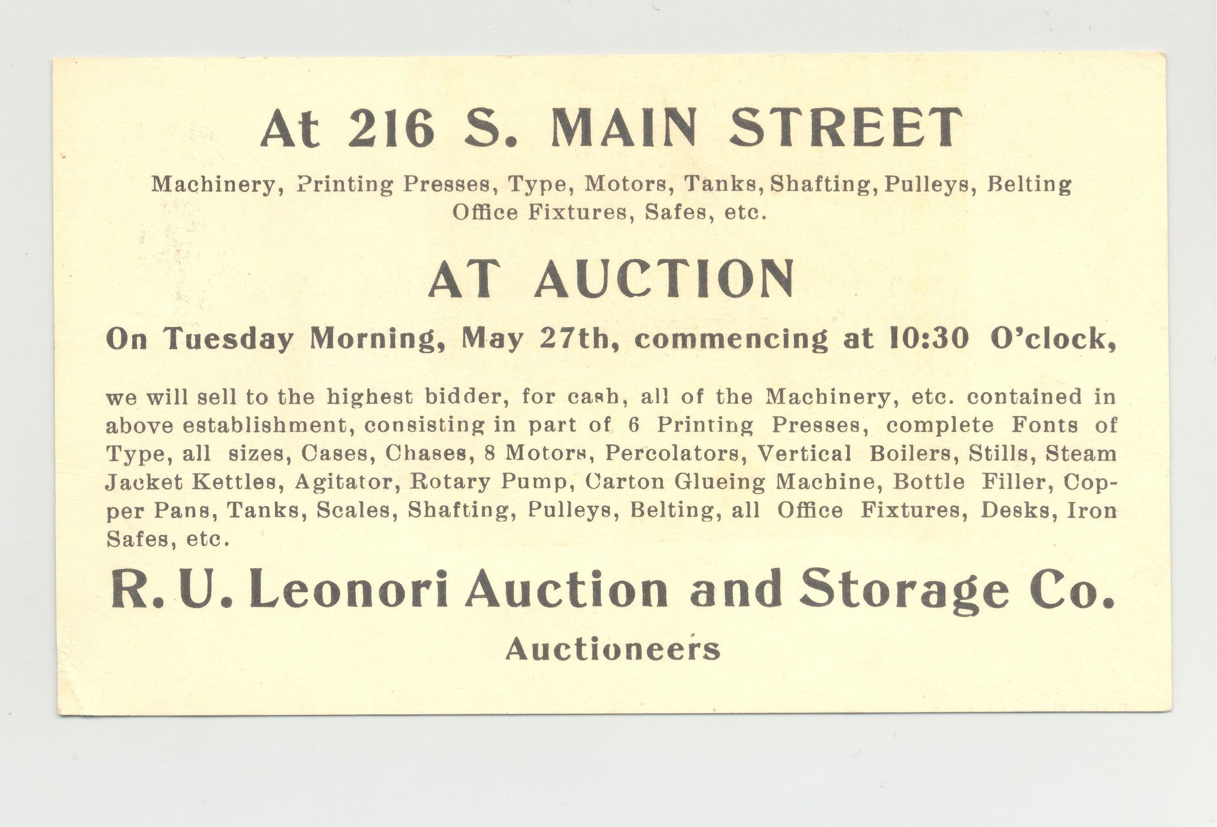 PSTCD, COMMERCIAL LIQUIDATION, R.U. LEONORI AUCTION AND STORAGE CO.