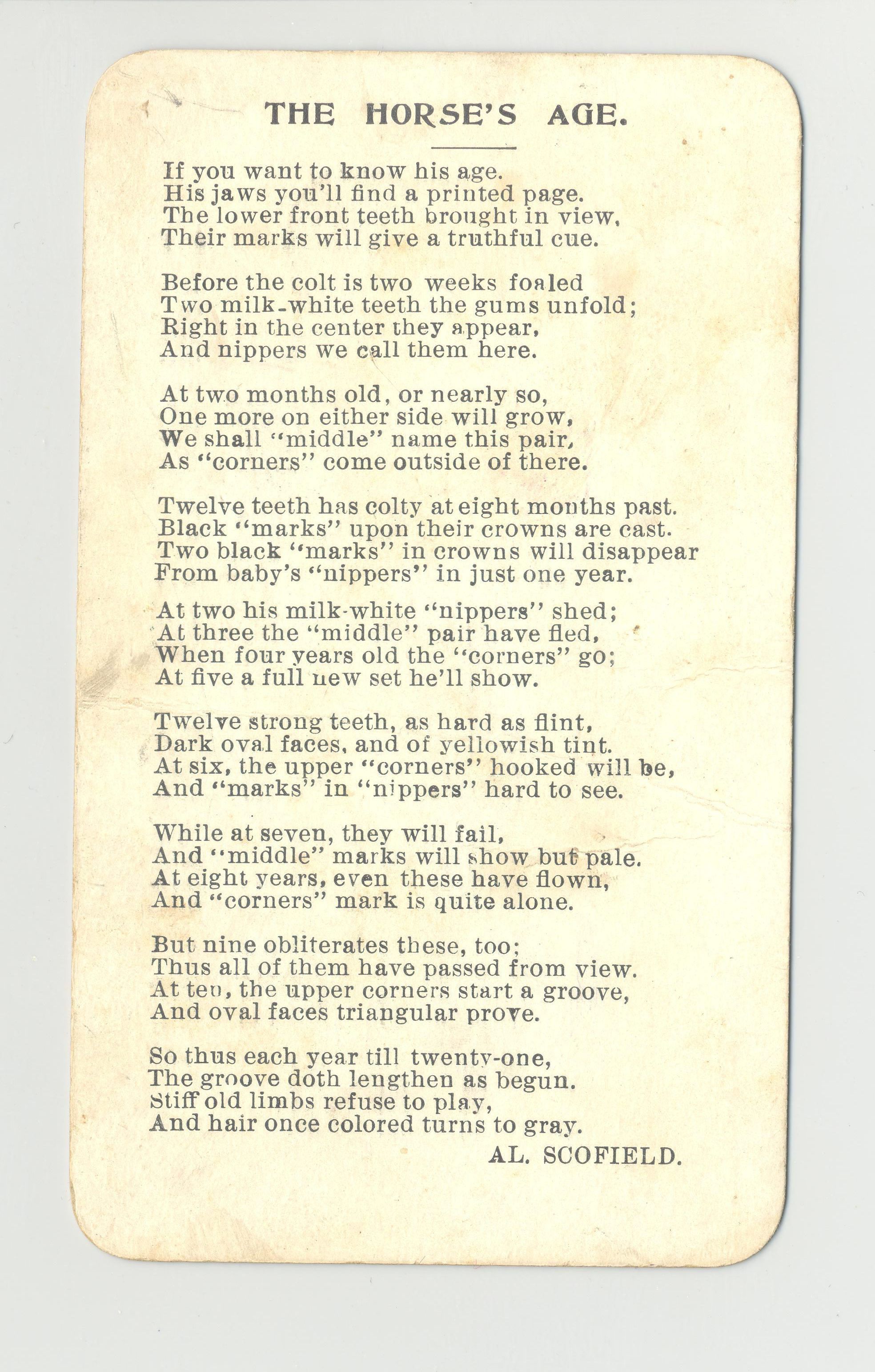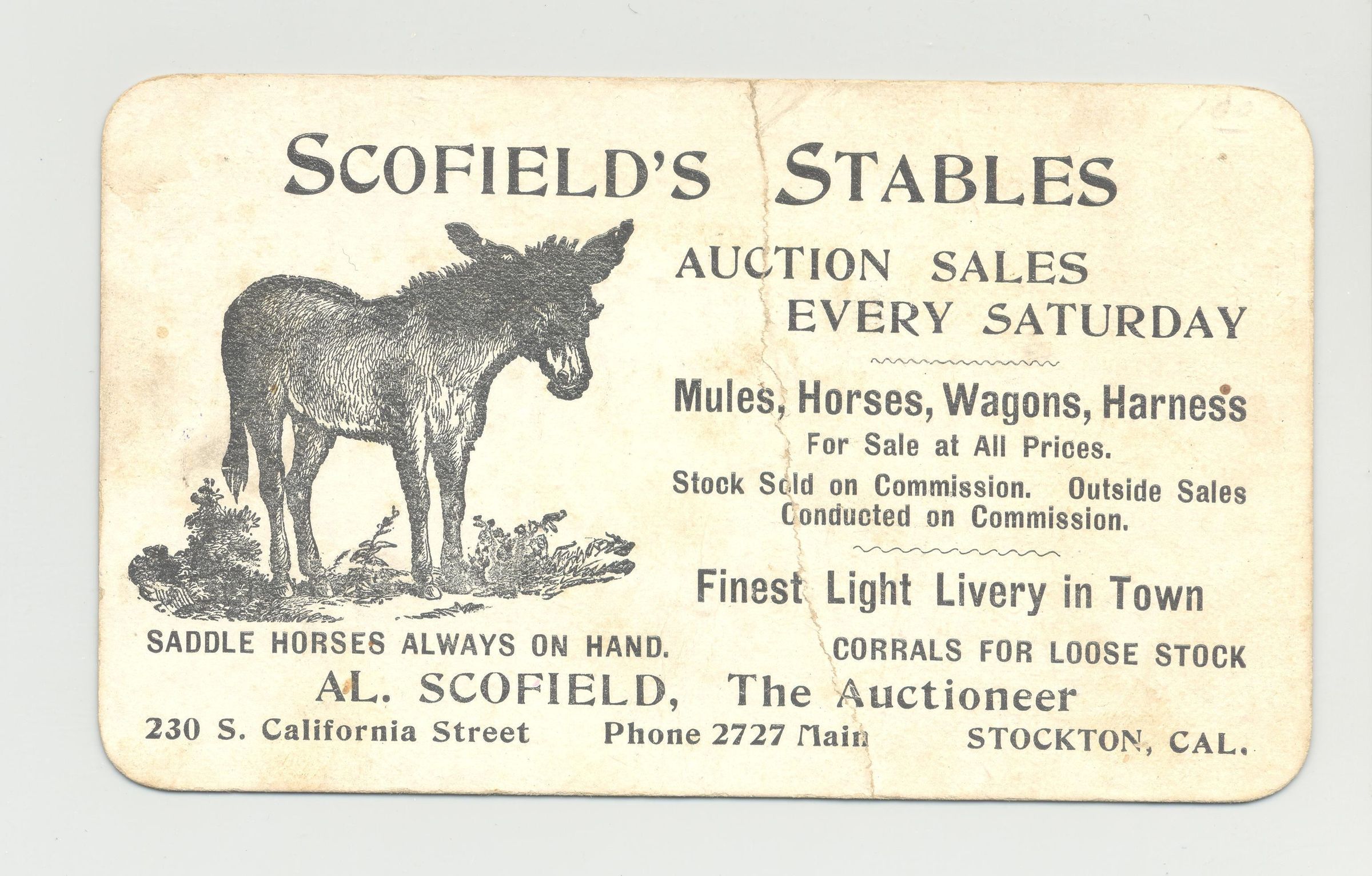 BSCD, HORSE, CA. AL. SCOFIELD, AUCTIONEER. PRINT OF MULE