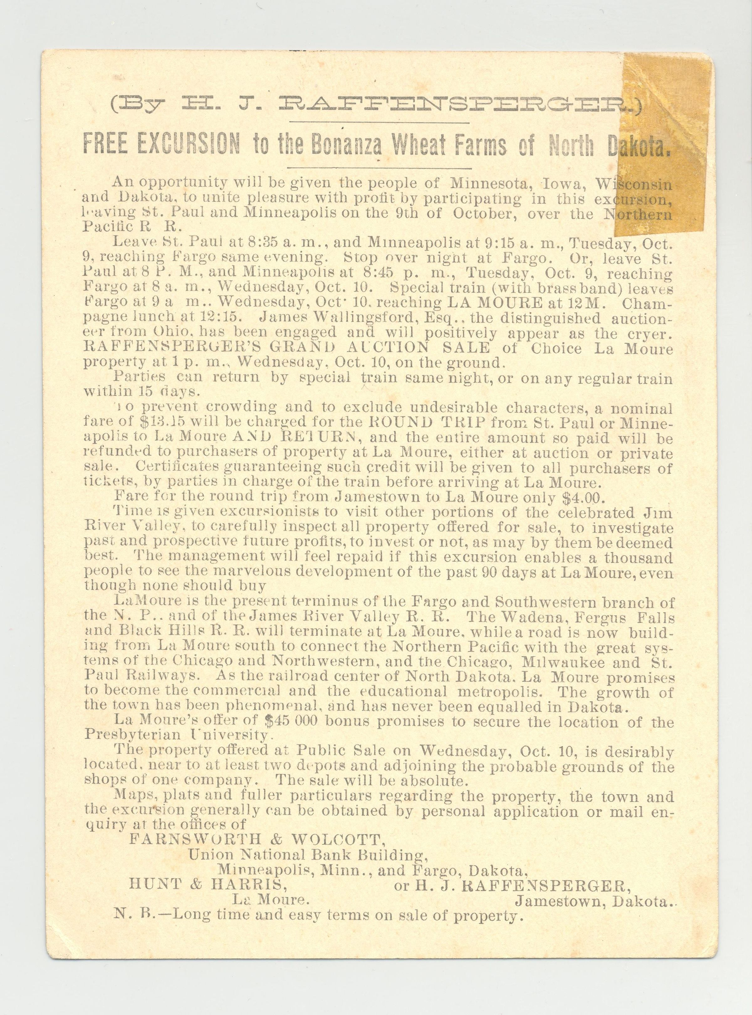 TRCD, LAND, ND. JAMES WALLINGSFORD, ESQ AUCTIONEER. COLOR PRINT OF GIRL ON FRONT