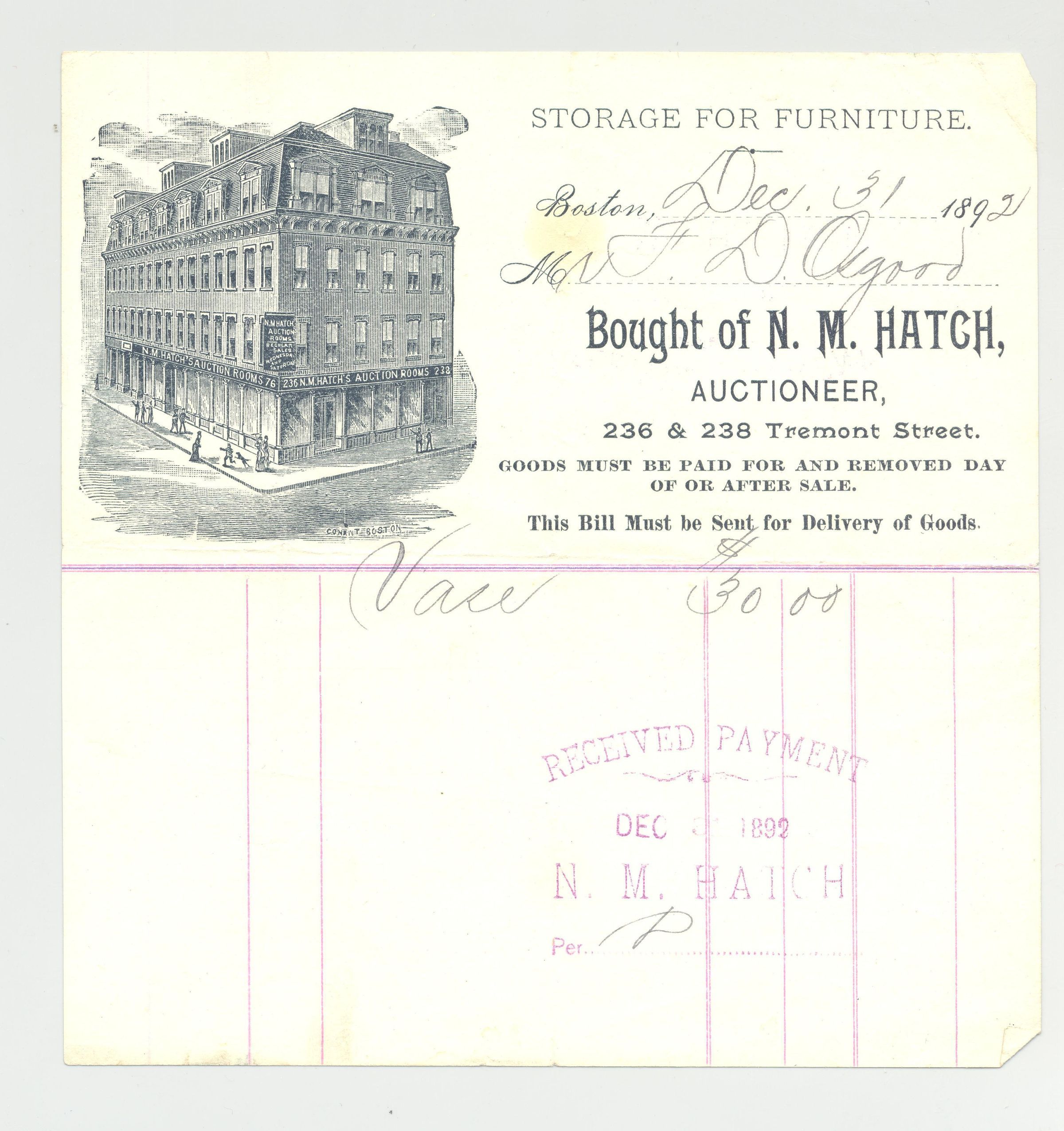 REC, 1892, MA. N.M. HATCH, AUCTION ROOMS