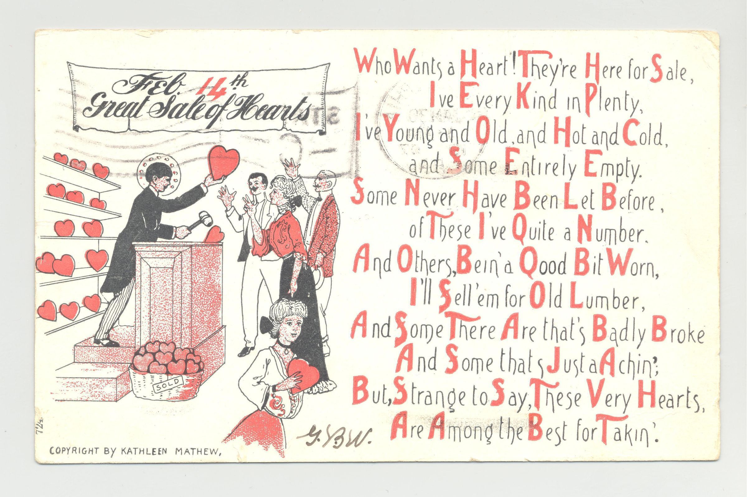 PSTCD, 1907, GREAT SALE OF HEARTS. VALENTINES DAY AUCTION