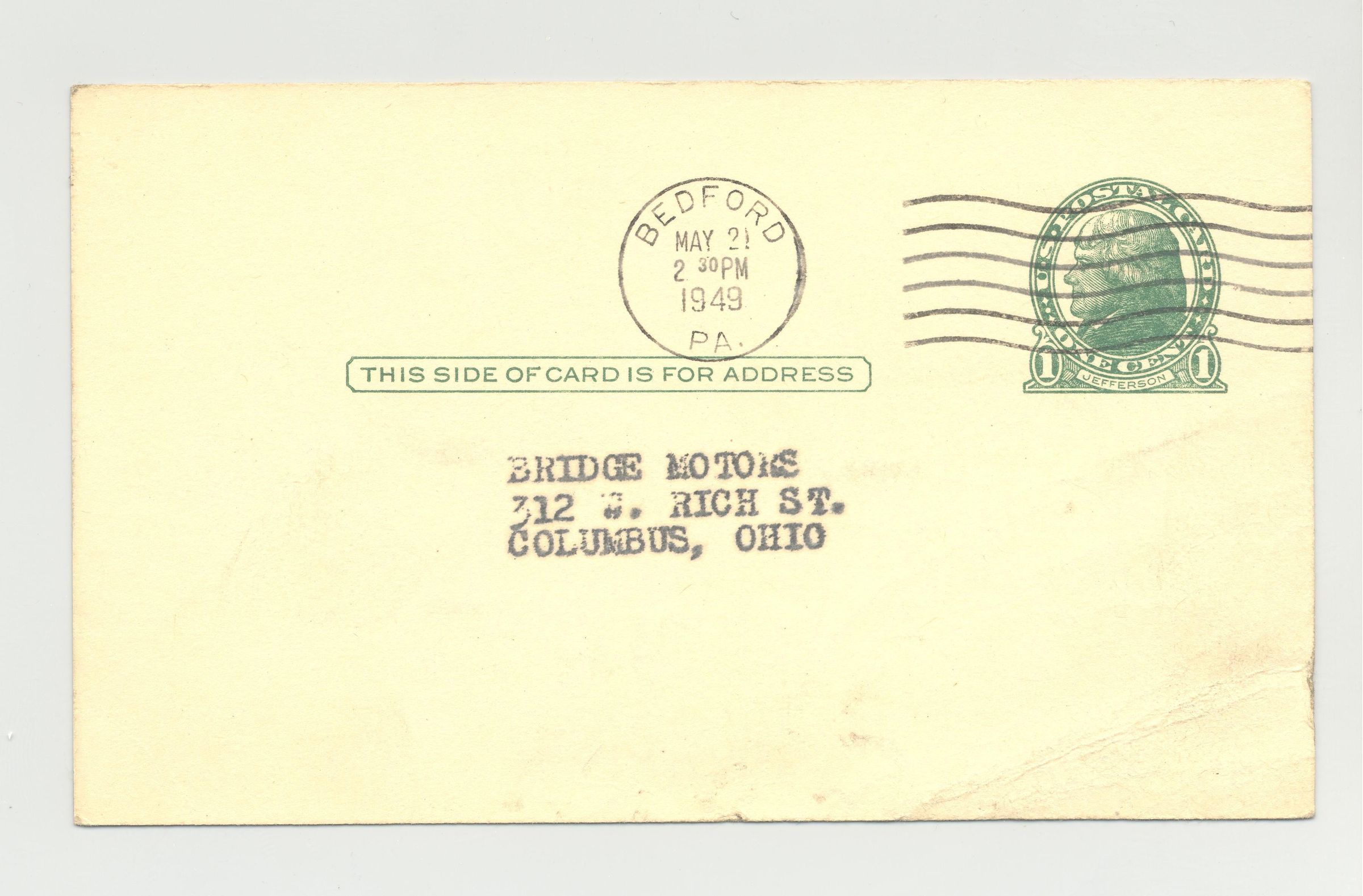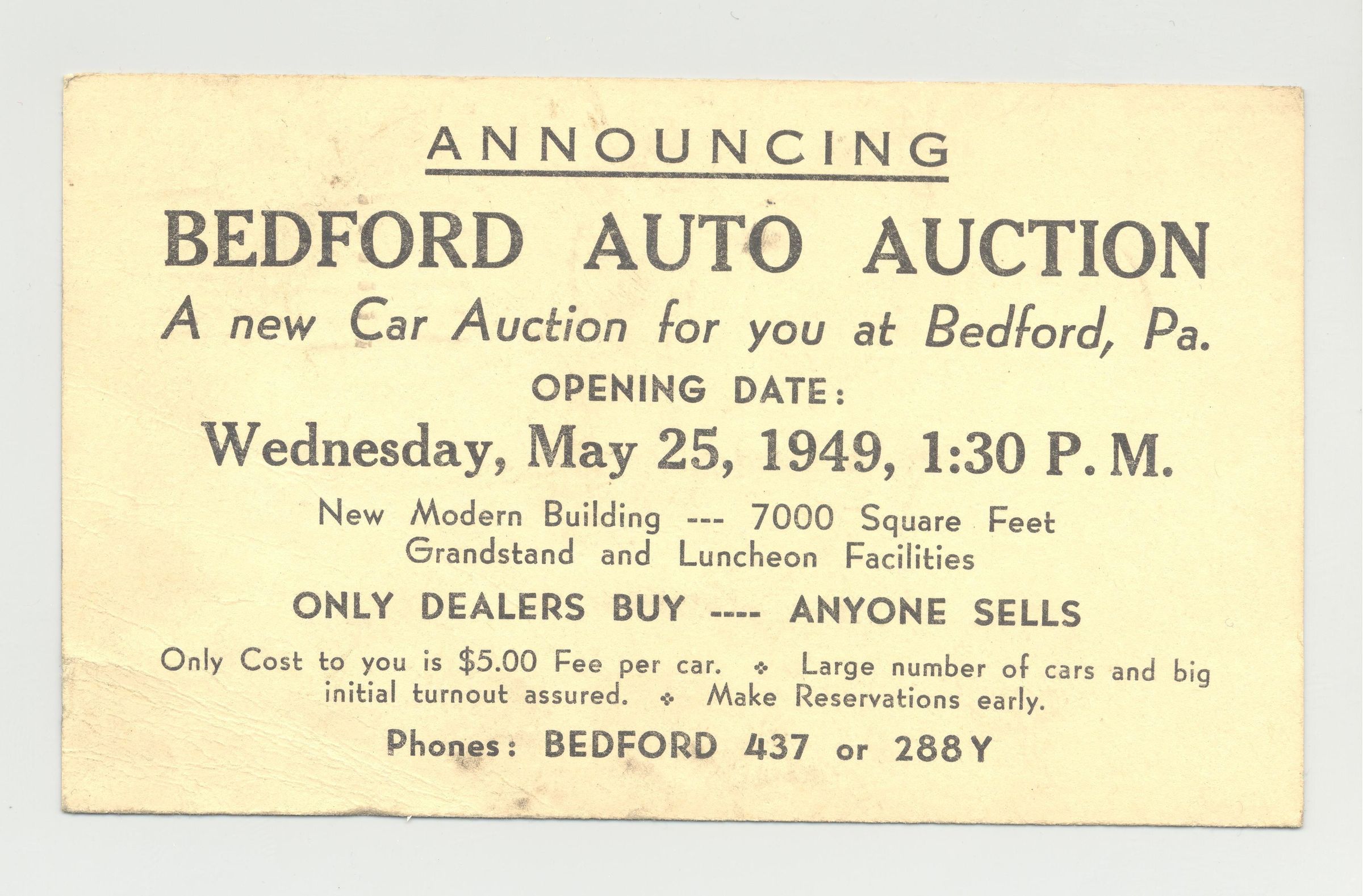 PSTCD, 1949, AUTO, PA. BEDFORD AUTO AUCTION.