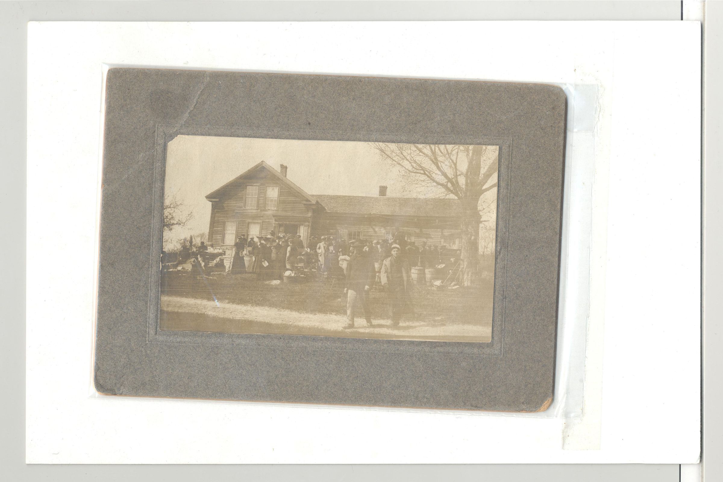 PHOTO MOUNTED ON CARDBOARD, ESTATE, CROWD, HOUSE, PERSONAL PROPERTY.