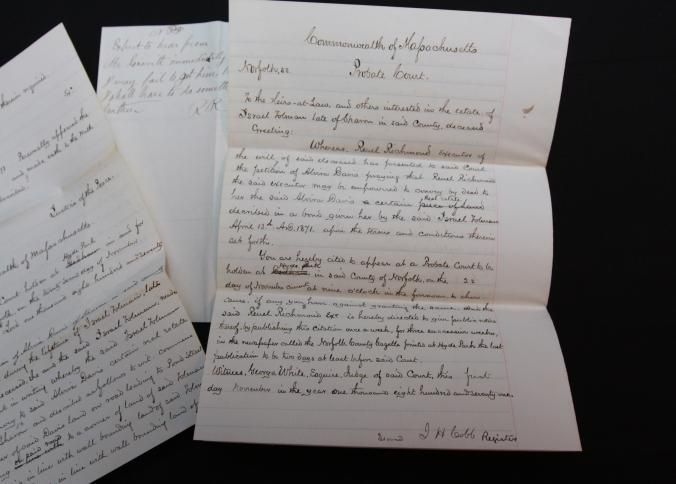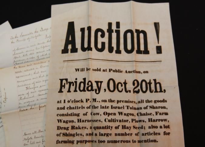 BROADSIDE, ESTATE, FARM, 1871, MA. UNFRAMED, WITH DOCUMENTS, RUEL RICHMOND, EXEC.