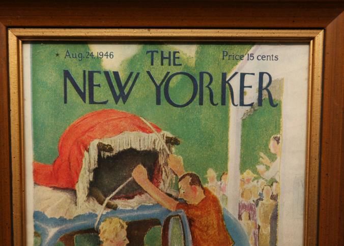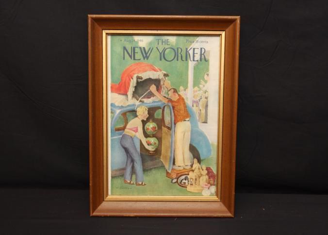 FR. 1946 NEW YORKER MAG. COVER. COLORFUL AUCTION SCENE.