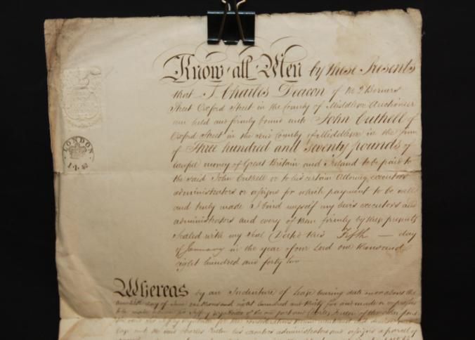 DOC, 1842, BOND OF INDEMNITY, 15 1/4" X 10" THREE PAGES
