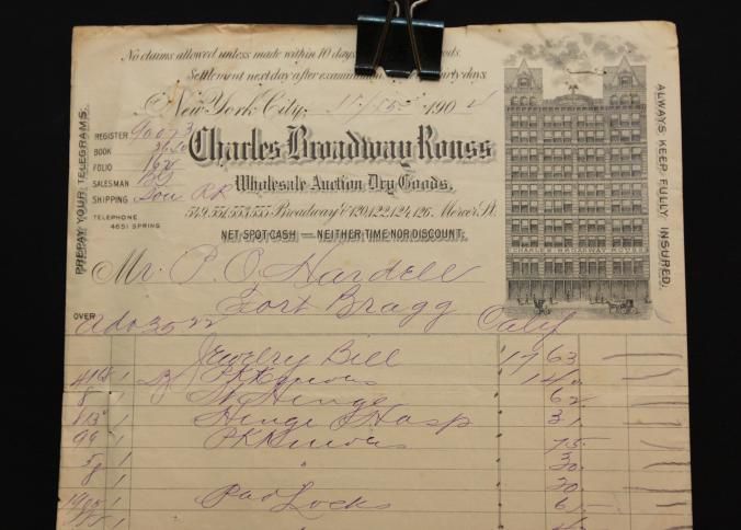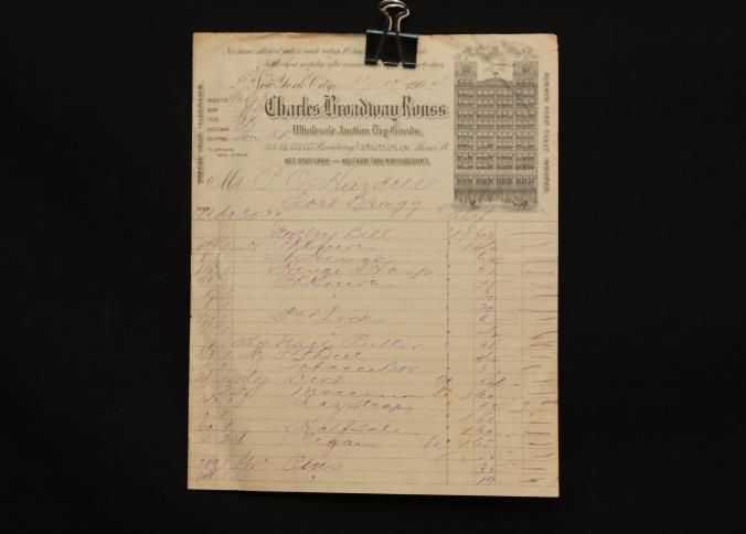 INVOICE, DRY GOODS,1904, CA. CHARLES BROADWAY ROUSS WHOLESALE AUCTION