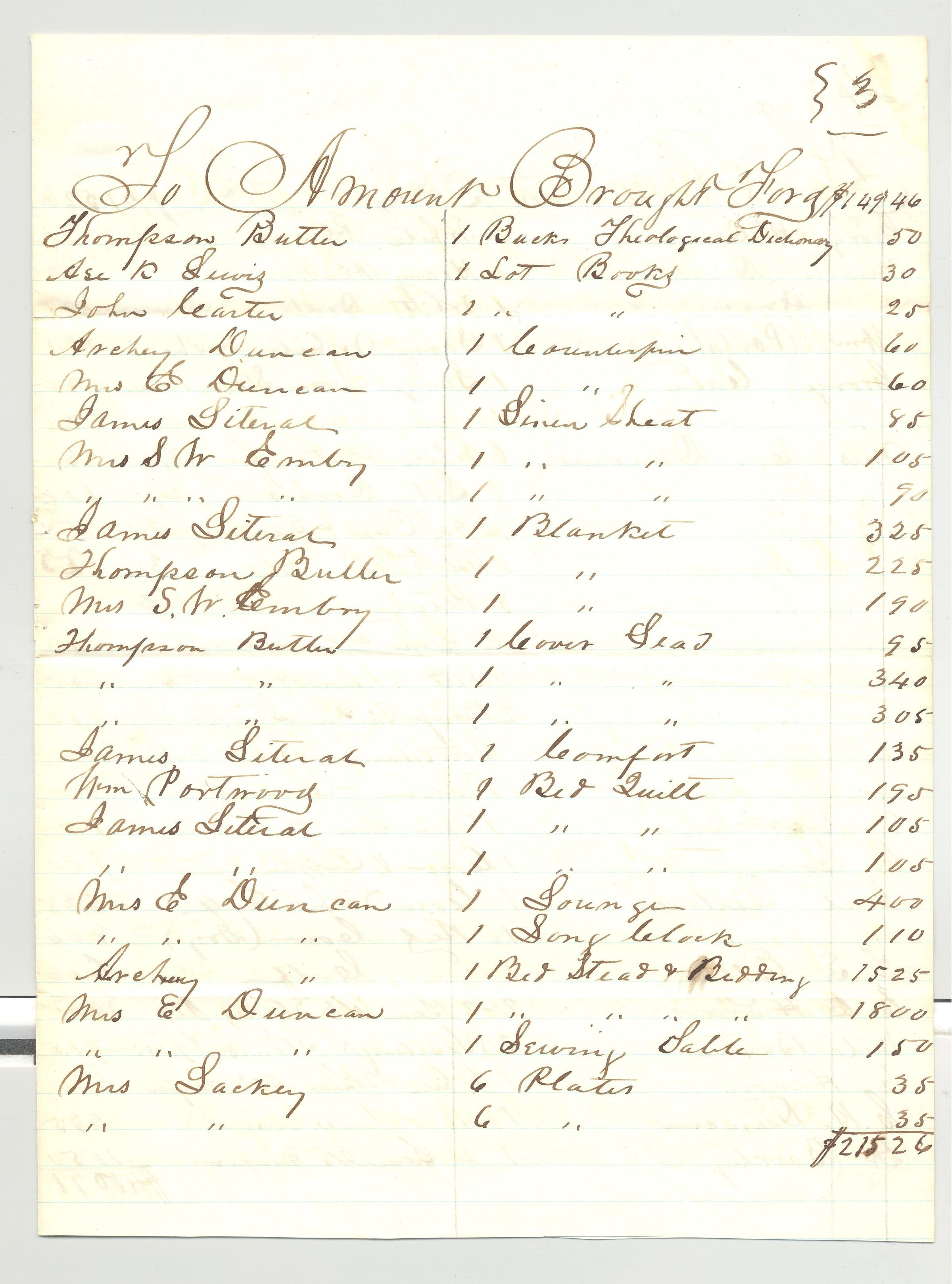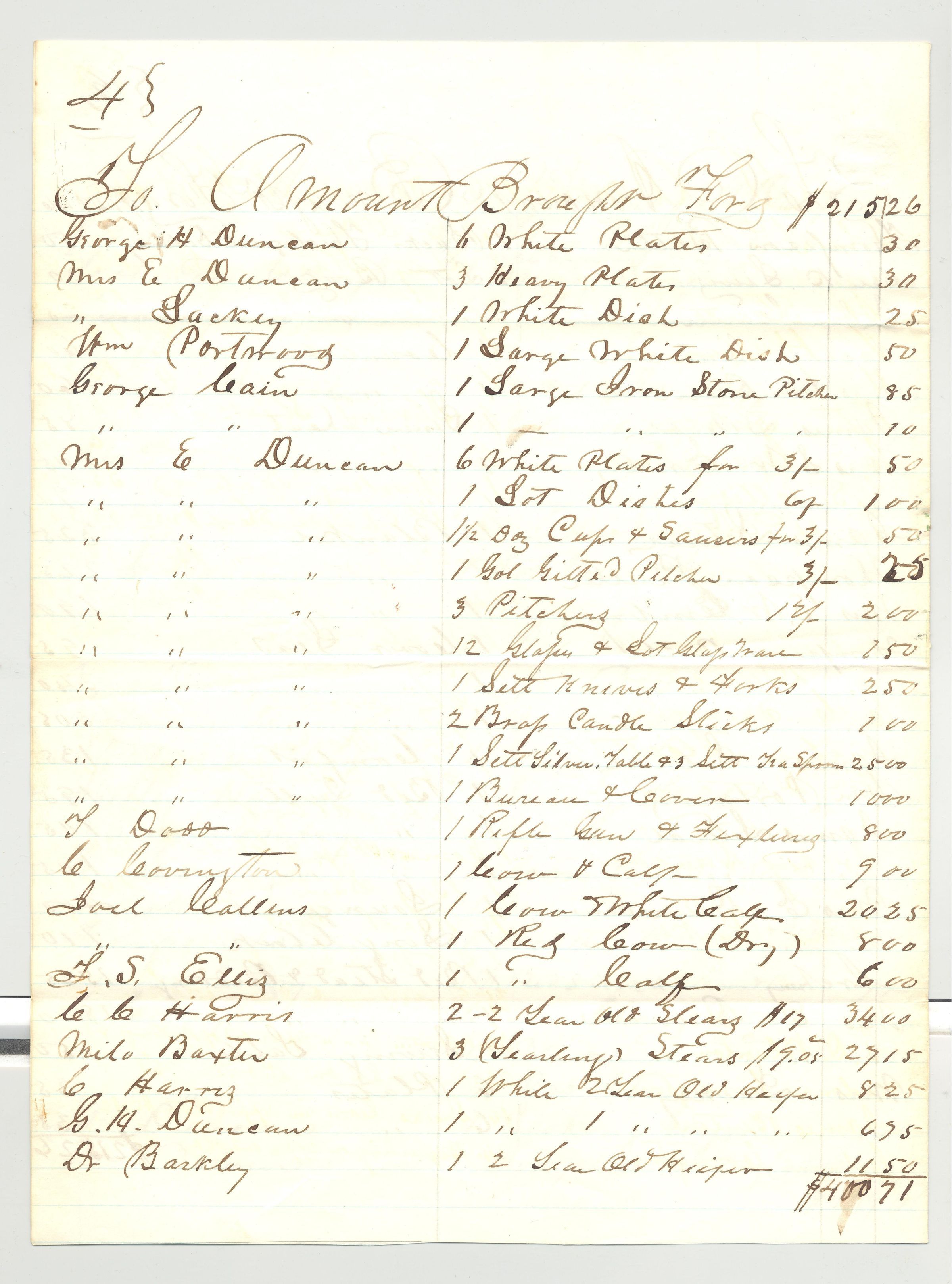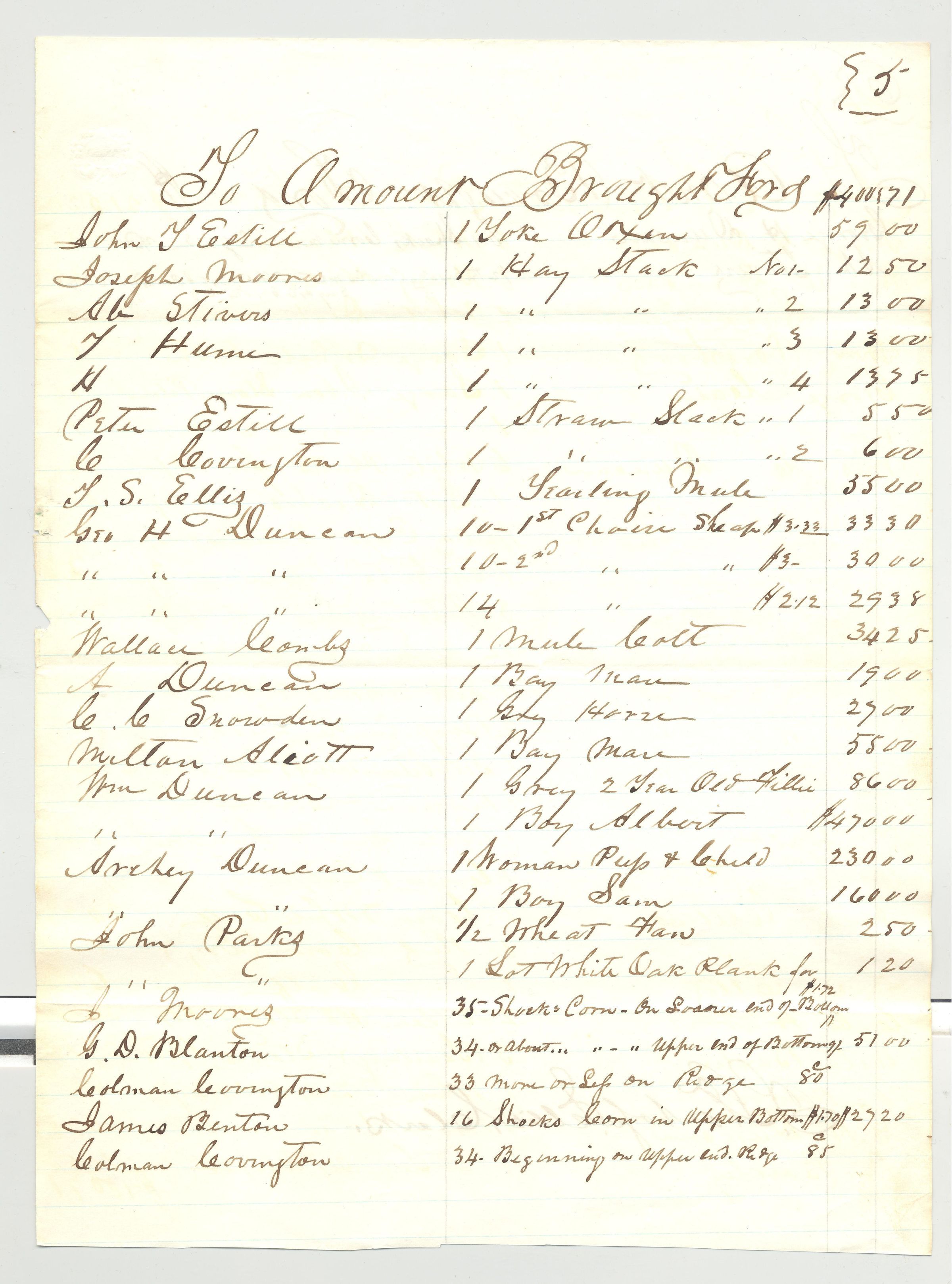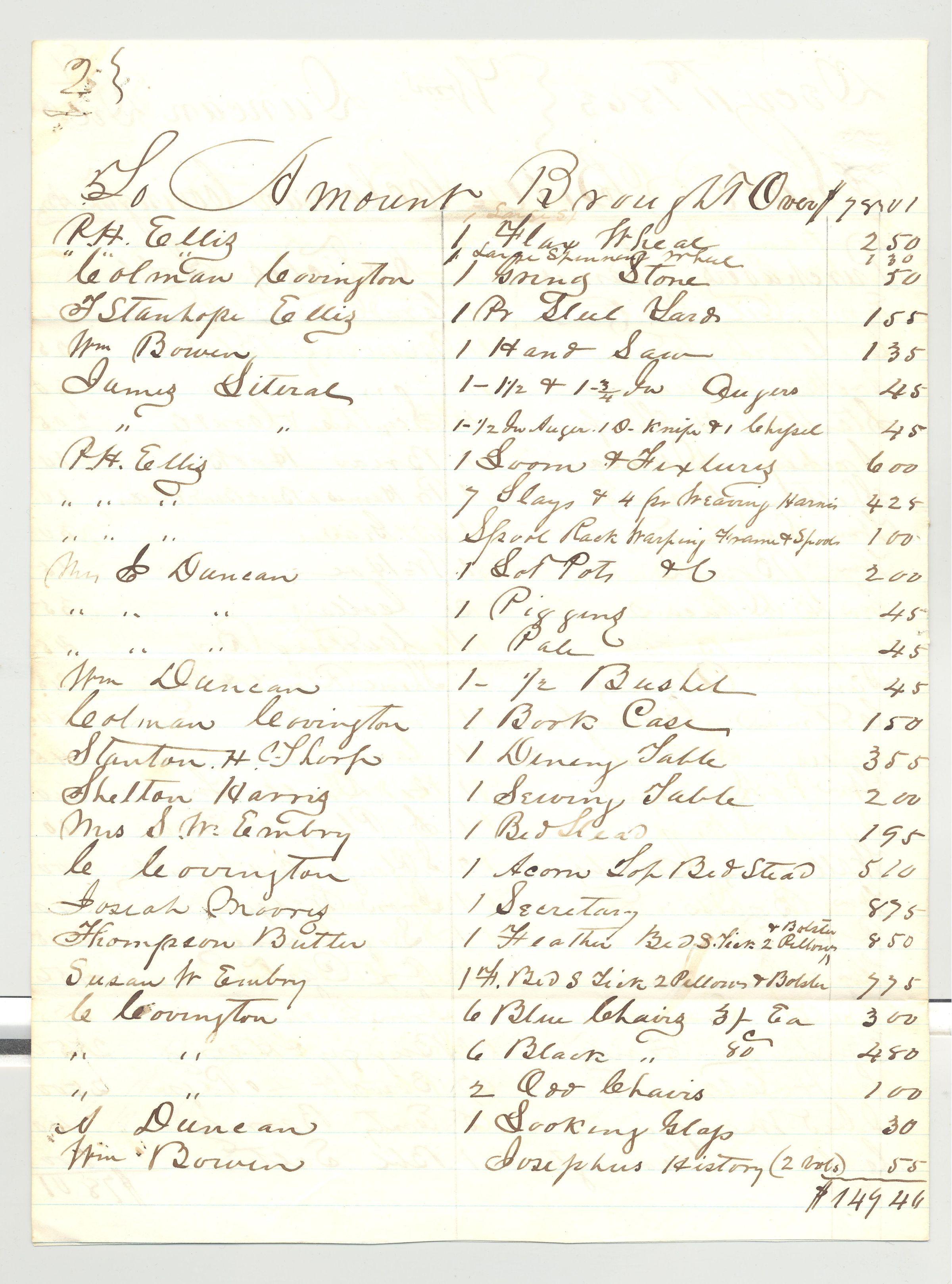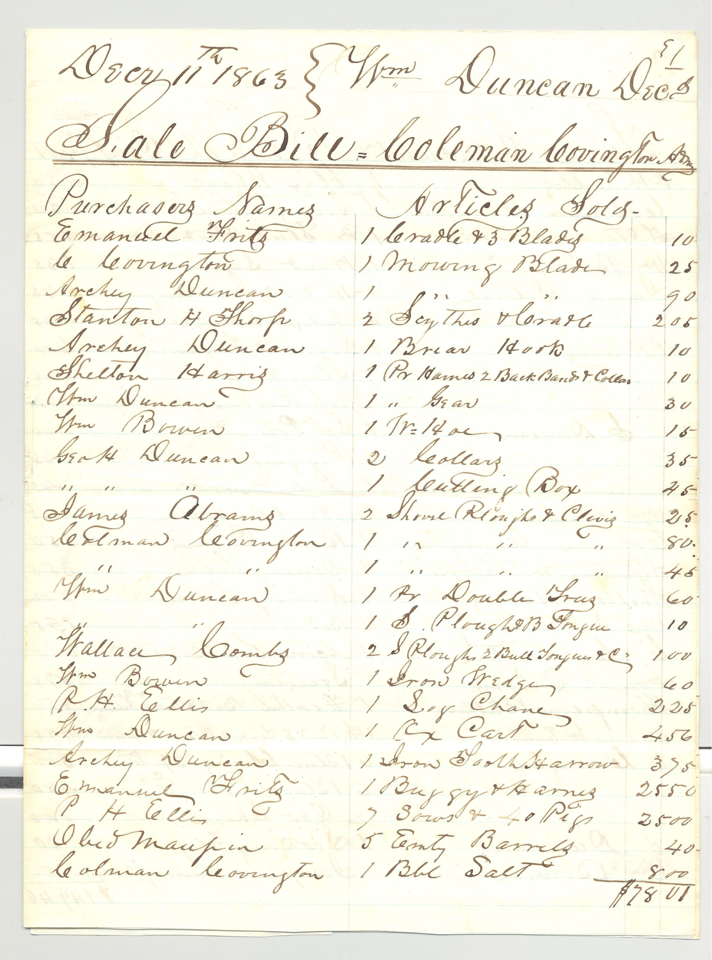 RECORD OF SALE, 1863, WILLIAM DUNCAN PLANTATION, 3 PP.