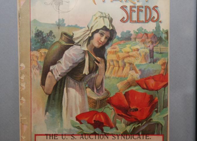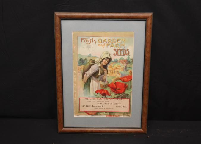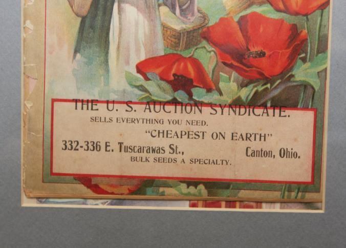 EARLY 20THC FR. "U.S. AUCTION SYNDICATE" SEED AUCTION CATALOG. 7 1/2X10 1/2". FULL COLOR ILLUSTRATED COVER IS PRINTED WITH THE NAME OF THE COMPANY PLUS "SELLS EVERYTHING YOU NEED "CHEAPEST ON EARTH" 332-336 E. TUSCARAWAS ST. CANTON, OHIO.Created By
