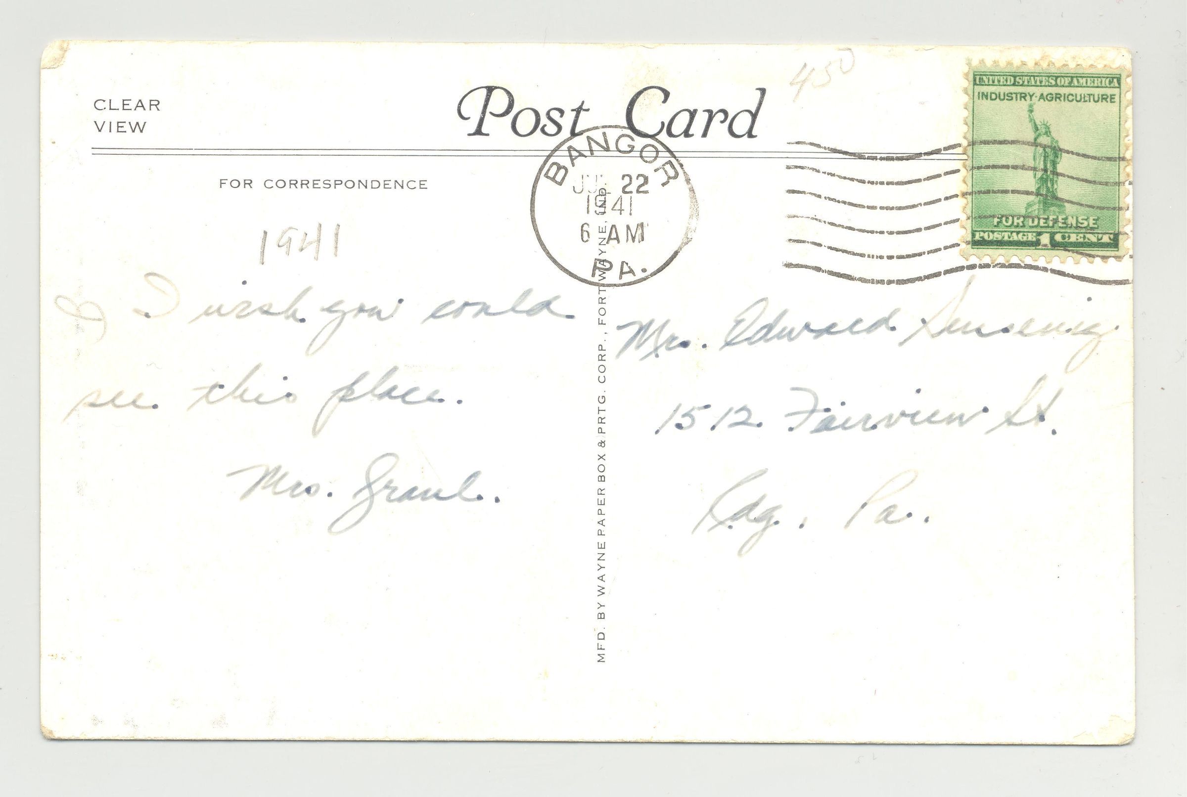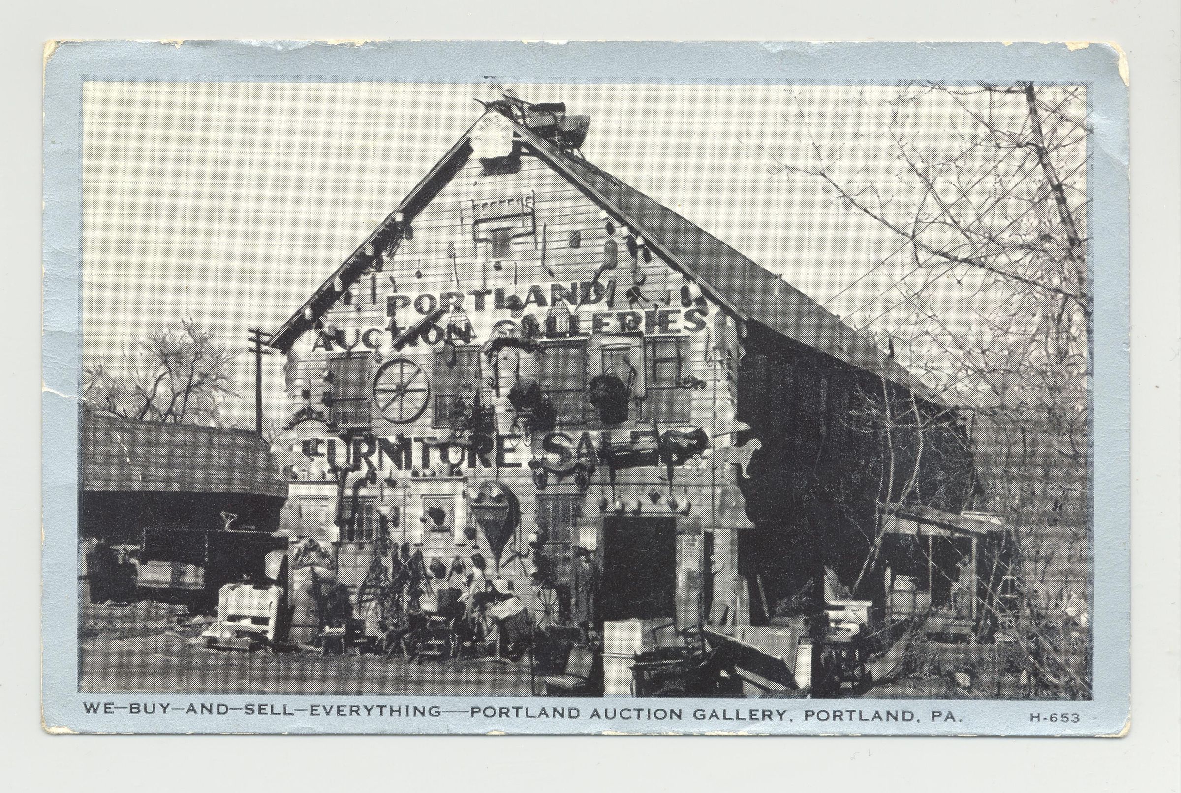 PSTCD, 1941 PORTLAND, PA. "PORTLAND AUCTION GALLERIES, FURNITURE SALES, WE-BUY-AND SELL-EVERYTHING." GREAT PHOTO CARD.Created By