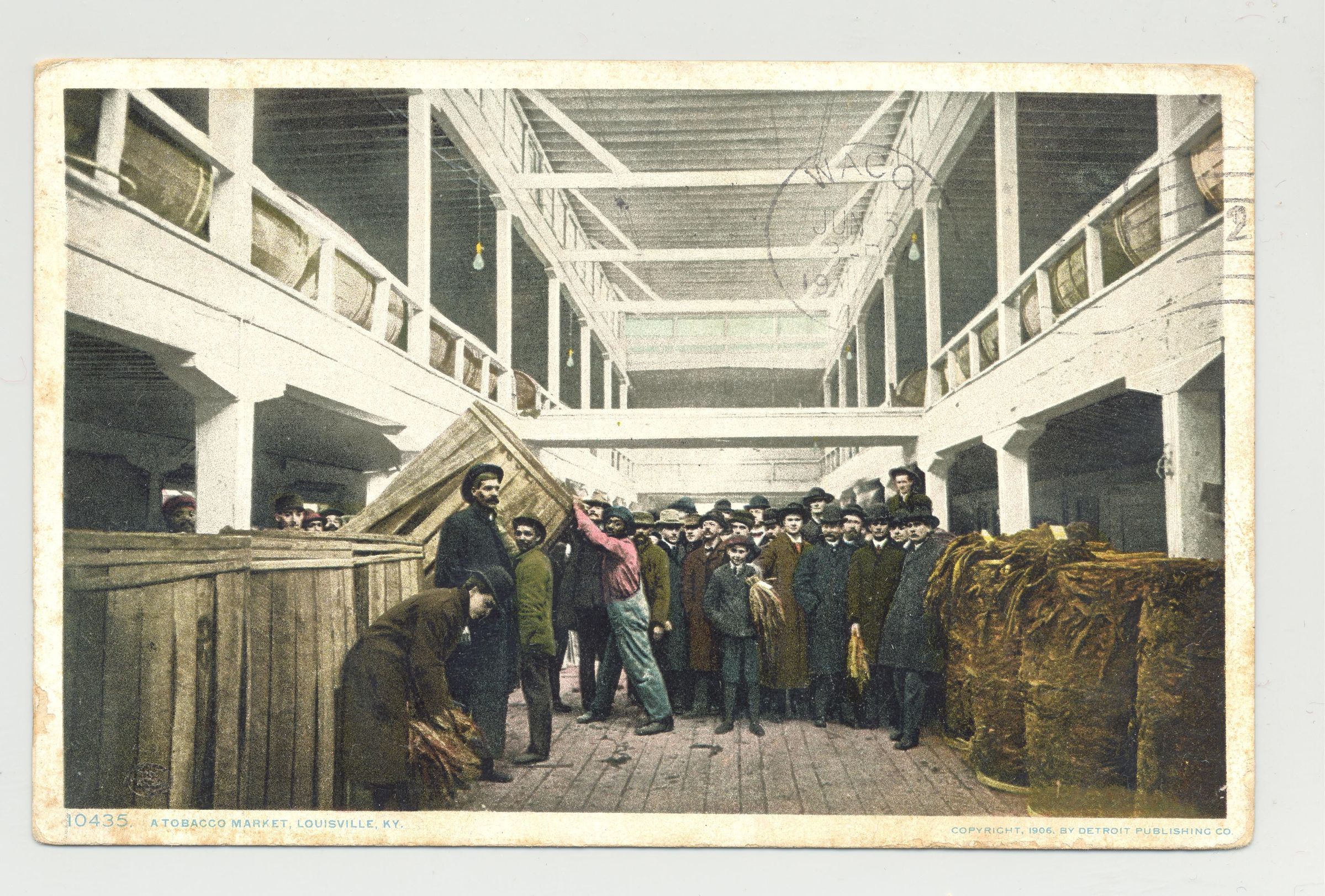 PSTCD, TOBACCO. SHOWS LARGE KEGS BEING MOVED IN A WAREHOUSE.