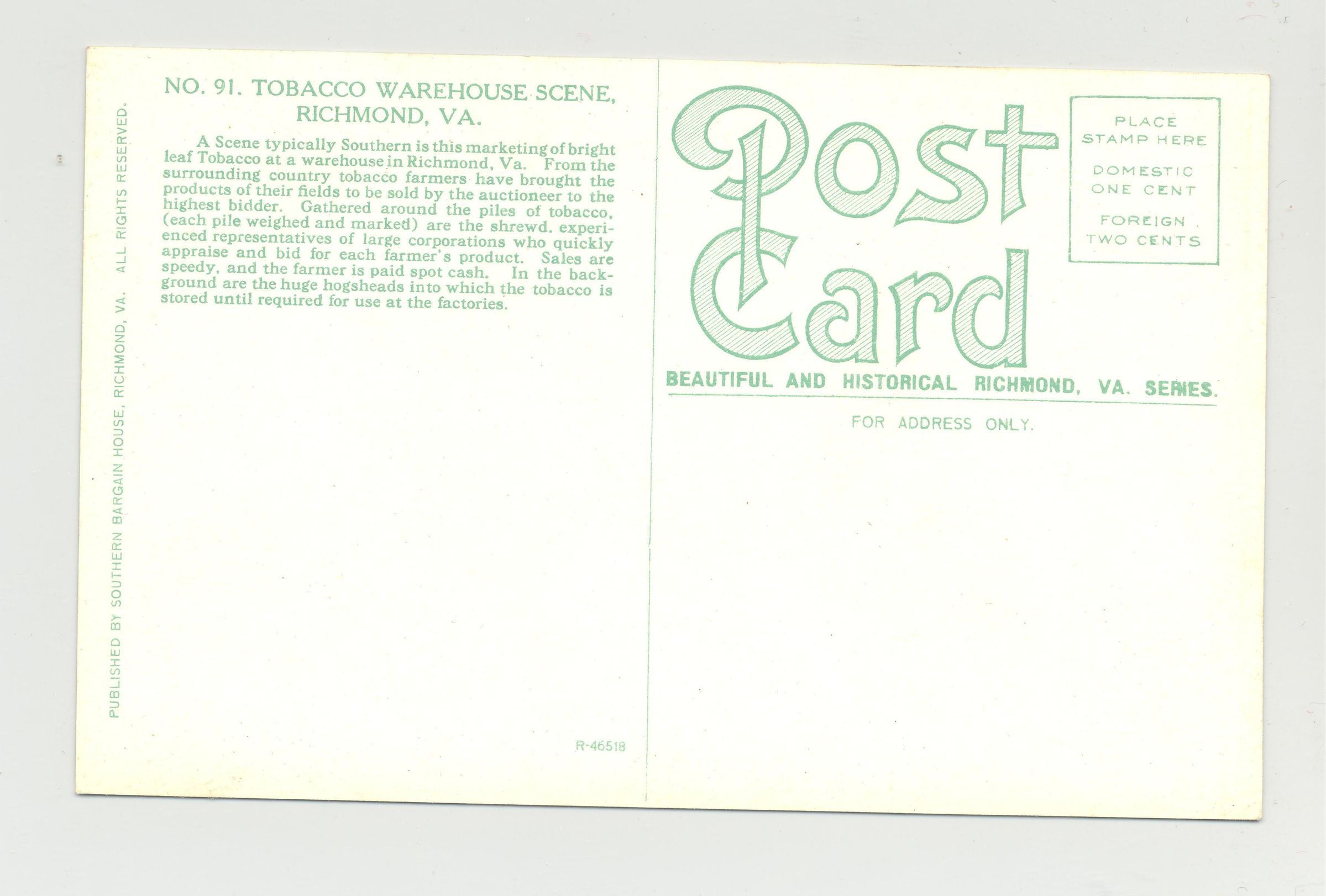PSTCD, TOBACCO. "TOBACCO WAREHOUSE SCENE IN RICHMOND, VIRGINIA."