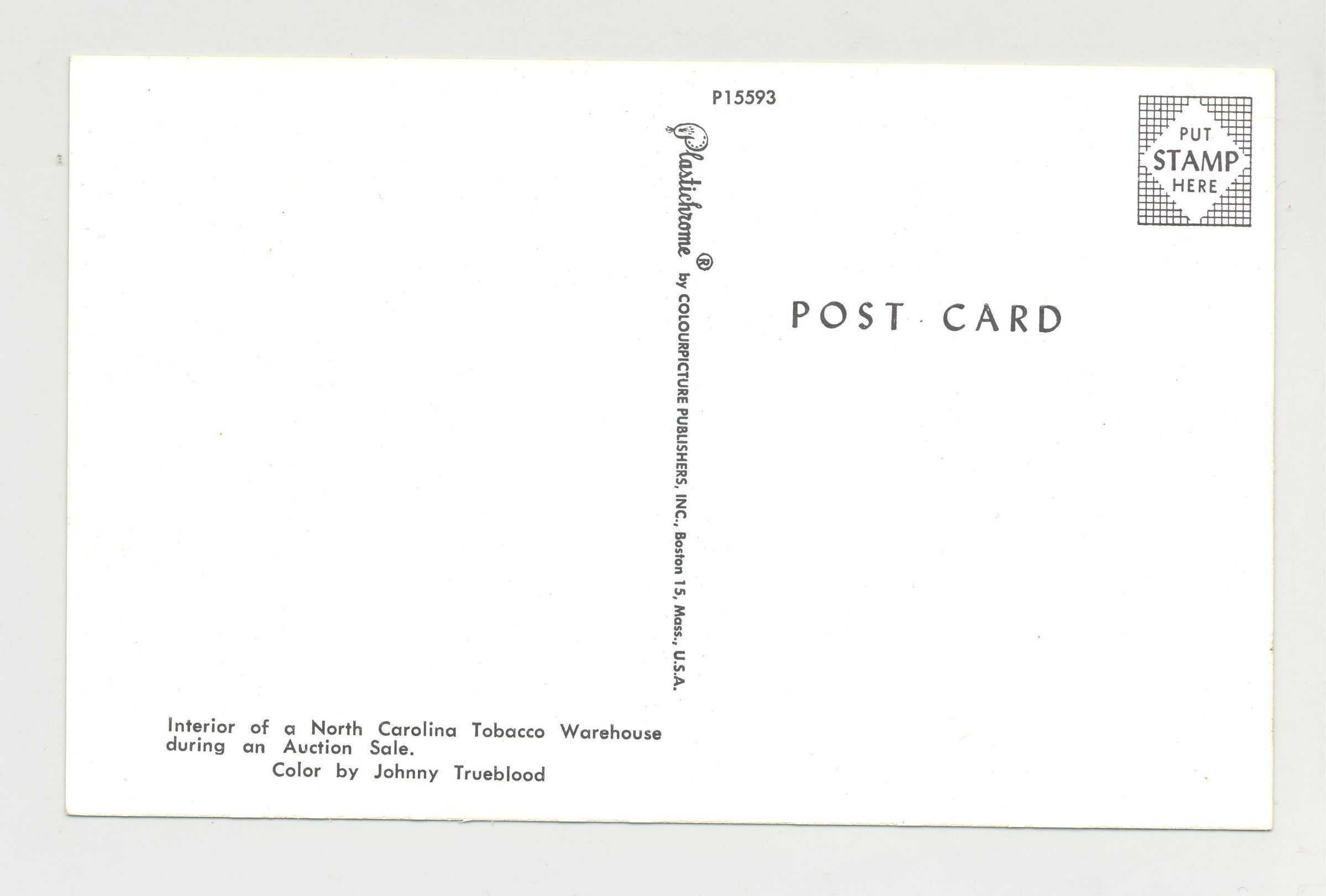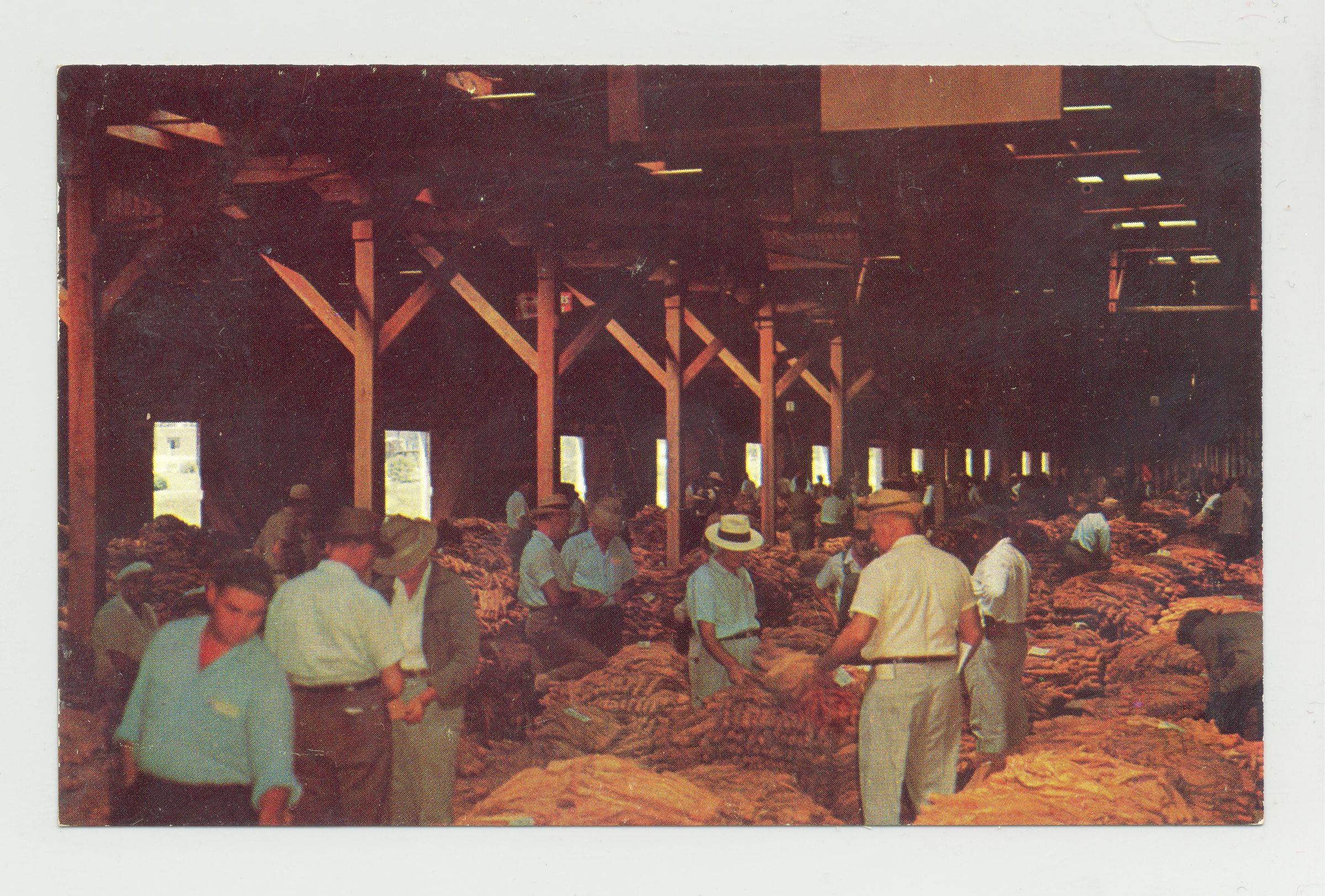 PSTCD, TOBACCO. "INTERIOR OF A NORTH CAROLINA TOBACCO WAREHOUSE DURING AN AUCTION SALE."