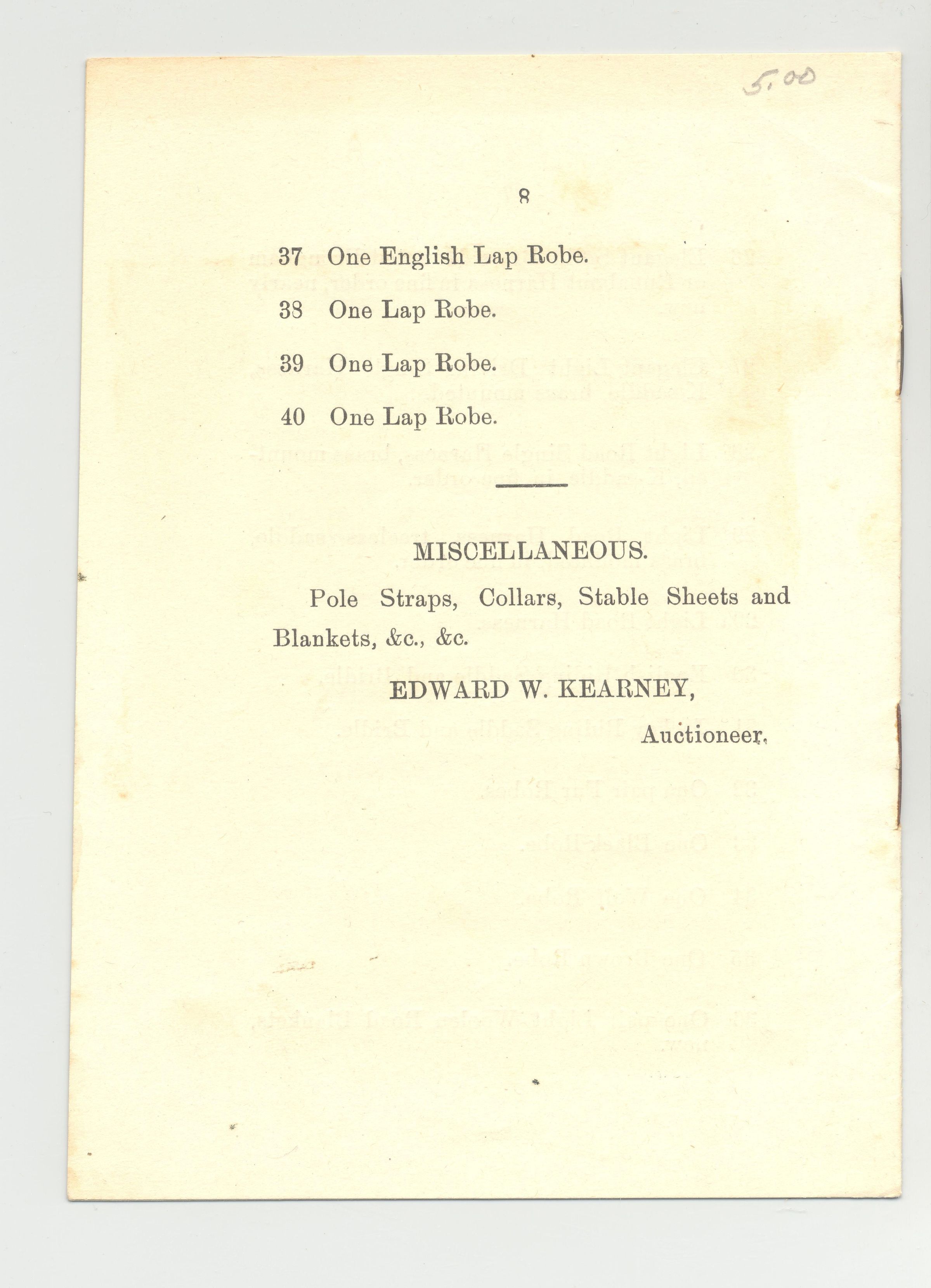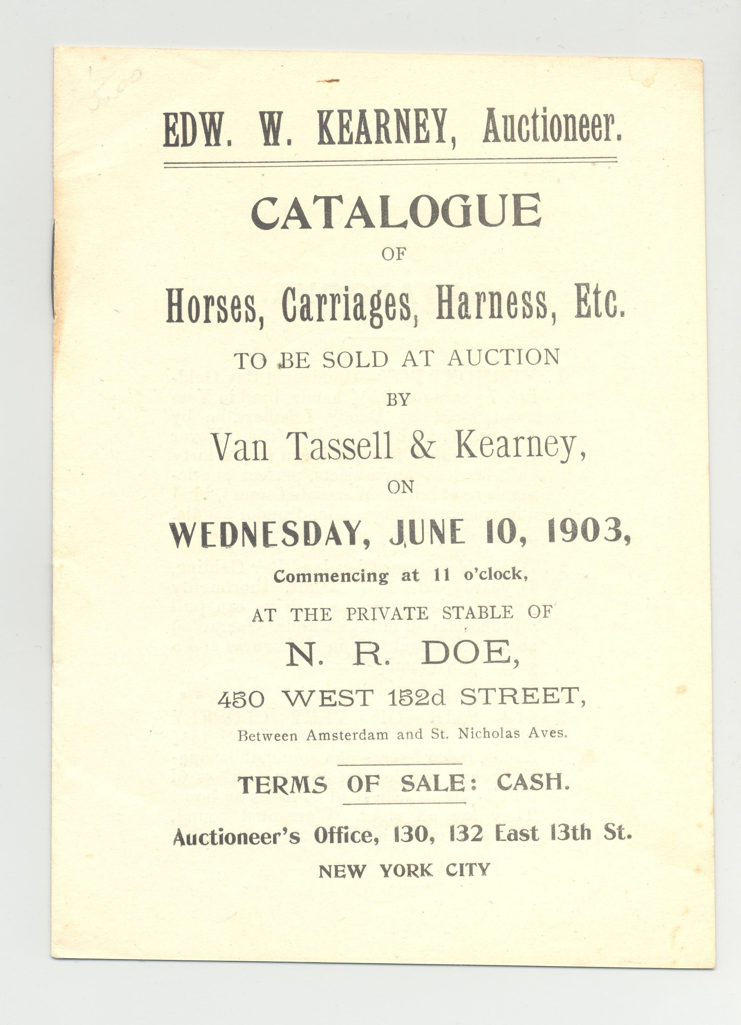 CAT, 1903, HORSE, NY. 8 PP. 4 3/4" X 6 1/2" VAN TASSELL & (EDWARD W.) KEARNEY, AUCTIONEER