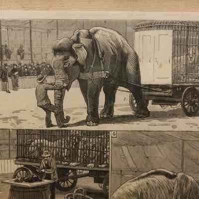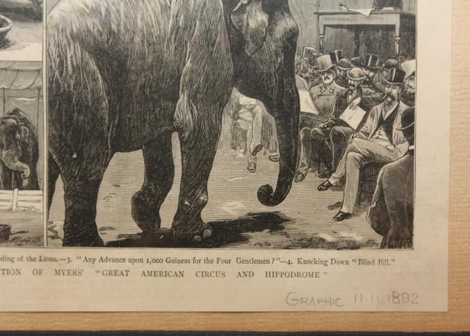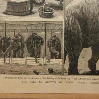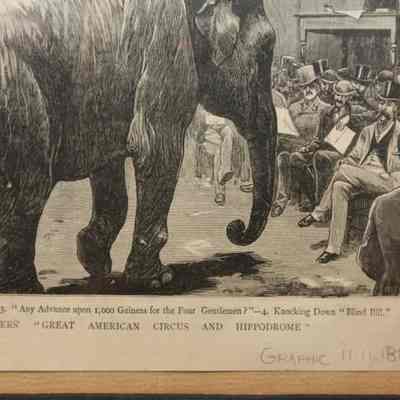 FR. 1882 ENGRAVING OF A CIRCUS AUCTION HAVING 4 ACTION SCENES. 9X9 1/2". CLEAN AND ORIGINAL CONDITION WITH GREAT DETAIL.Type of Print