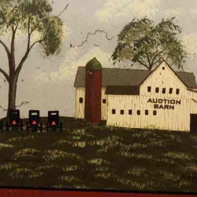FR. CONTEMPORARY O/B PTG.: AMISH AUCTION BARN SCENE S/BILLY JACOB. 8X10". GREAT COLOR AND GRAPHICS.Type of Painting
