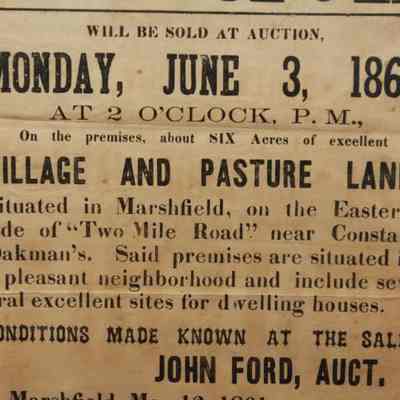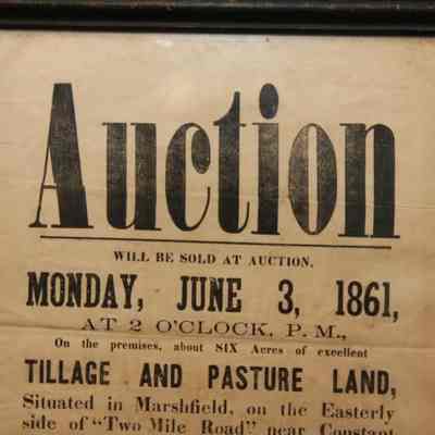 FR. 1861 BOSTON, MA. LAND AUCTION BROADSIDE. 9X12". 6 ACRES OF TILLAGE AND PASTURE LAND. GREAT EARLY CIVIL WAR PERIOD AUCTION AMERICANA.Created By