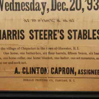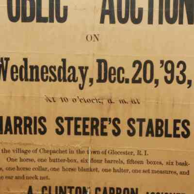 FR. 1893 R.I. ASSIGNEE'S SALE BROADSIDE,. 9X11 3/4". GREAT BROADSIDE FROM GLOUSTER, R.I. INCLUDING SALE OF HORSE, ONE BUTTER BOX, SIX BASKETS.Created By