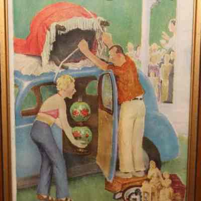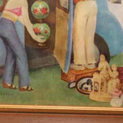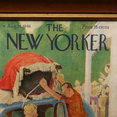 FR. 1946 NEW YORKER MAG. COVER. COLORFUL AUCTION SCENE.