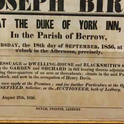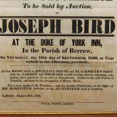 FR. 1856 MESSUAGE GARDEN & ORCHARD BROADSIDE. 10X15". AUCTIONEER JOSEPH BIRD. REAL ESTATE.