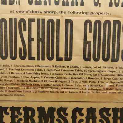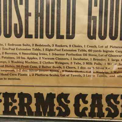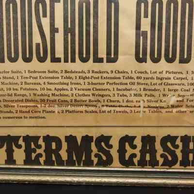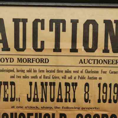 FR. 1919 HOUSEHOLD GOODS AUCTION BROADSIDE. 12 1/2 X 16 1/2". HAVING SOLD THE FARM, AUCTIONEER LLOYD MORFORD WILL SELL AT ONE O'CLOCK ALL THE CONTENTS. TERMS CASH.Created By