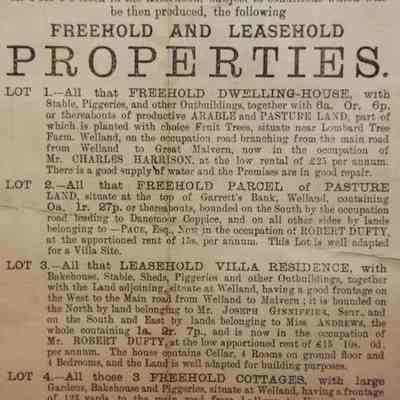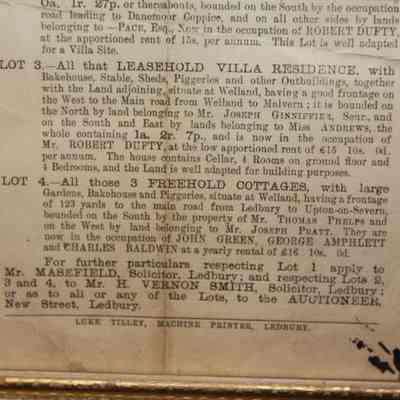 FR. 1890 REAL ESTATE AUCTION BROADSIDE. 5X8". AUCTION OF 4 LOTS TO TAKE PLACE AT THE PHEASANT INN, WELLAND. LOT 4 CONTAINS 3 COTTAGES.Created By
