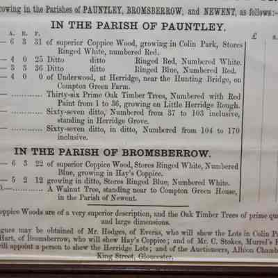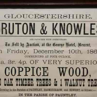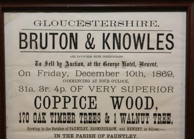 FR. 1869 WOOD TIMBER BROADSIDE. 8X10". BRUTON & KNOWLES SELLING 170 OAK TREES AND 1 WALNUT TREE AT THE GEORGE HOTEL IN NEWENT. 10 LOTS OF COPPICE WOOD. CATALOGS WERE AVAILABLE.Created By