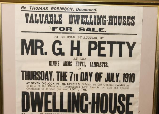 FR. 1910 REAL ESTATE BROADSIDE. 22 1/2X33". MESSRS. MARSDEN & MARSDEN WERE OFFERING SEVERAL DWELLING HOUSES AT THE KING'S ARMS HOTEL IN LANCASTER (ENGLAND?). tHIS MASSIVE BROADSIIDE ADVERTISES A 7PM START. mULTI SIZE TYPE.Created By