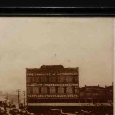 FR. BLOWN-UP PHOTO OF A STREET AUCTION SCENE. 10X13 1/2". THE PHOTO IS CONTEMORARY OF A C-1900 AUCTION SCENE IN THE CENTER OF TOWN. LARGE CROWD WITH MANY HORSEDRAWN VEHICLES.Created By