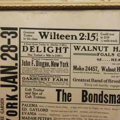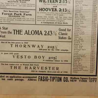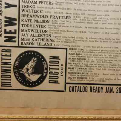 FR. 1908 FULL ADV. "MID-WINTER FASIG-TIPTON NY HORSE AUCTION. 11X15". THE AUCTION WAS HELD AT MADISON SQUARE GARDEN JAN 28-31. CATALOGS WERE TO BE READY JAN 20TH. THIS WAS A MAJOR EVENT WITH HUNDREDS OF GREAT HORSES. FANTASTIC DETAILED LISTING.Created By
