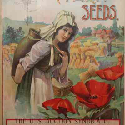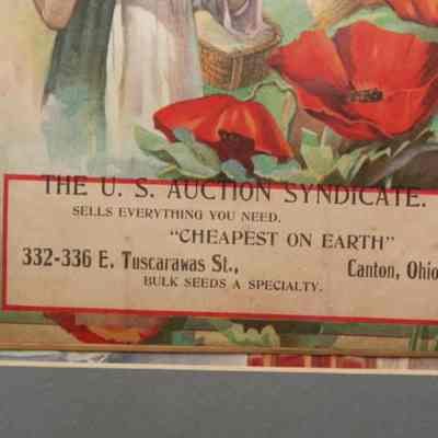 EARLY 20THC FR. "U.S. AUCTION SYNDICATE" SEED AUCTION CATALOG. 7 1/2X10 1/2". FULL COLOR ILLUSTRATED COVER IS PRINTED WITH THE NAME OF THE COMPANY PLUS "SELLS EVERYTHING YOU NEED "CHEAPEST ON EARTH" 332-336 E. TUSCARAWAS ST. CANTON, OHIO.Created By