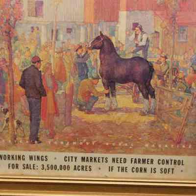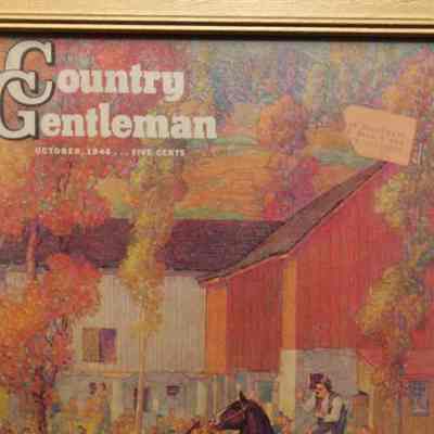 FR. 1944 COUNTRY GENTLEMAN MG. COVER DEPICTING FARM AUCTION SCENE. 10 1/2X13 1/2". WELL DRESSED AUCTIONEER WEARING A TIE, IS ON THE FARM WAGON WORKING THE DIVERSE CROWD ON THE AUCTION SALE OF A WORK HORSE. WELL DRESSED CLERK IS ON THE GROUND BEHIND THE HORSE READY TO RECORD THE SALE. KIDS AND DOGS ON THE LOOSE.Created By