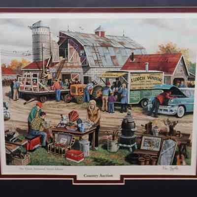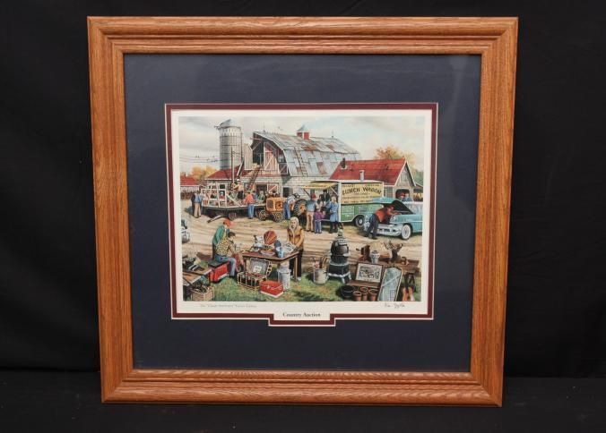 FR. CONTEMPORARY"COUNTRY AUCTION" PRINT. 9X11" PRINT DOUBLE MATTED AND FRAMED IN OAK TO 18 1/2X16 1/2". THIS VERY DETAILED ON-SITE AUCTION SCENE PRINT IS SIGNED "KEN ZYLLA" AND IS "THE CLASSIC AMERICAN ENCORE EDITION". FANTASTIC COLOR AND DETAIL.Created By