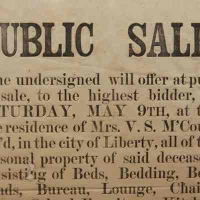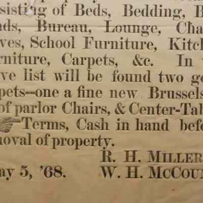 FR. 1868 NY "PUBLIC SALE" AUCTION BROADSIDE. 9 1/2X12 1/2". AUCTIONEER R. H. MILLER WAS OFFERING THE ESTATE OF V.S. M'COUN FROM THE CITY OF "LIBERTY" BY ORDER OF W.H. MCCOUN. GREAT EARLY AMERICAN BROADSIDE.Created By