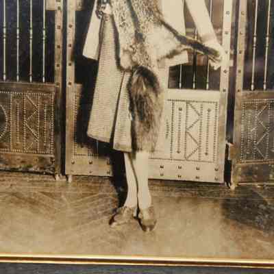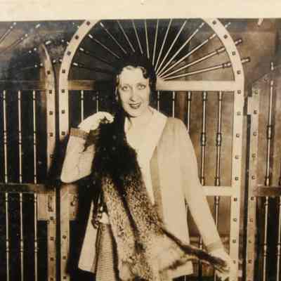 FR. EARLY 20THC PHOTO OF FUR AUCTION PREVIEW. 6X8". C-1920'S. A WELL DRESSED WOMAN SHOWING A FUR ON STAGE.Created By