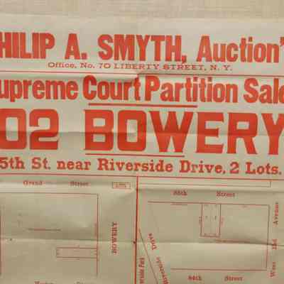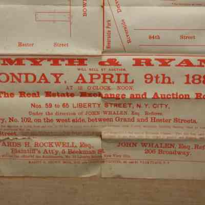 FR. 1888 NY REAL ESTATE AUCTION BROADSIDE. PHILIP A SMYTH AUCTIONEER. 18X24". REAL ESTATE EXCHANGE AND AUCTION ROOM 59 TO 65 LIBERTY ST.Created By