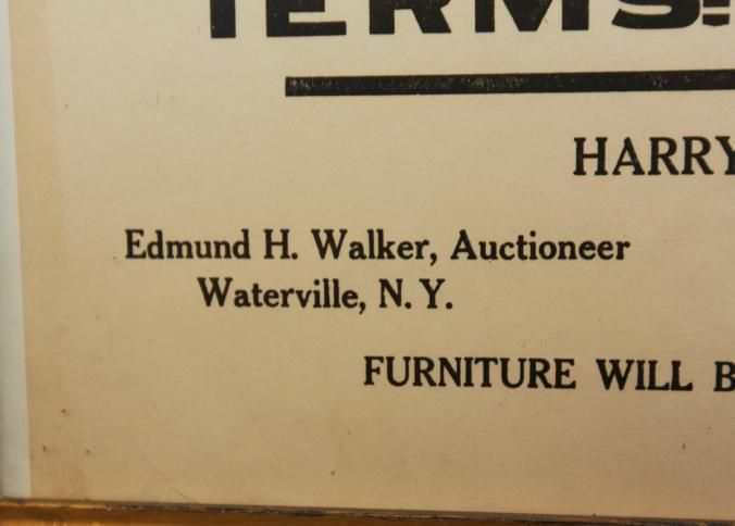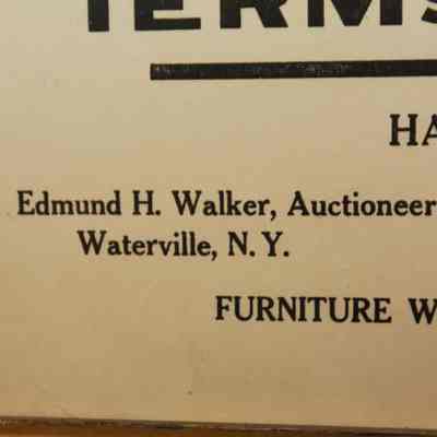 FR. C-1900 NY FARM AUCTION BROADSIDE. 12X17". AUCTIONEER: EDMUND H. WALKER, WATERVILLE, NY. 1PM START.Created By