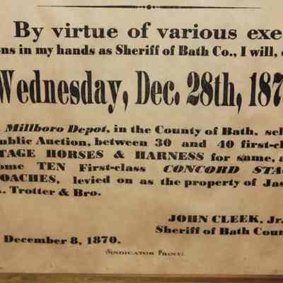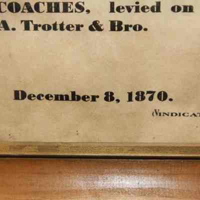 FR. (COPY) 1870 SHERIFF'S AUCTION BROADSIDE STAGE COACHES, HORSES & HARNESS. 10X13".