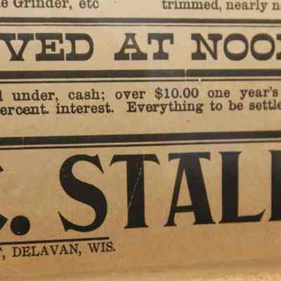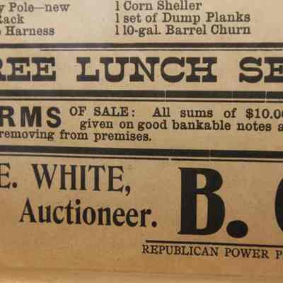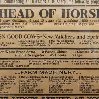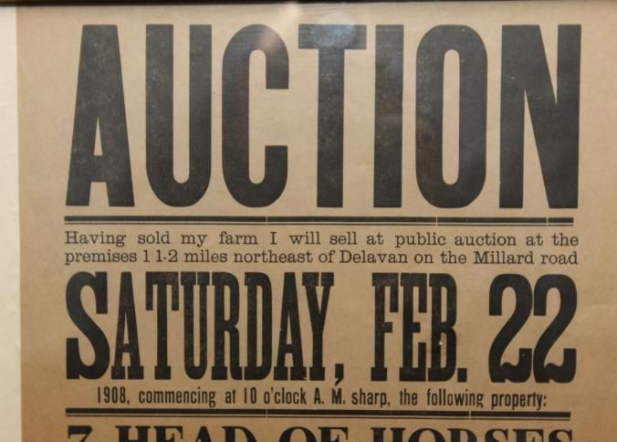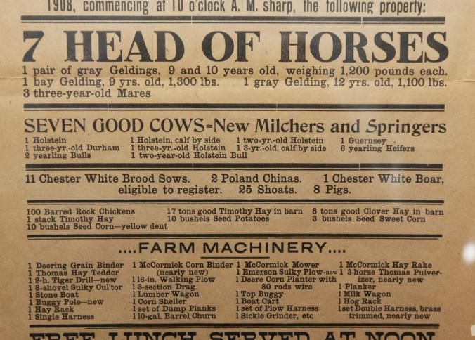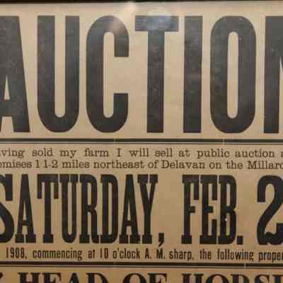 FR. 1908 WI (WISC) FARM AUCTION BROADSIDE. 11X15". AUCTIONEER: E.E. WHITE.