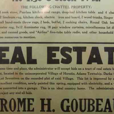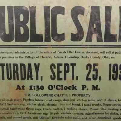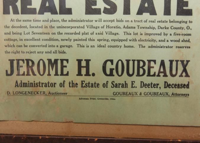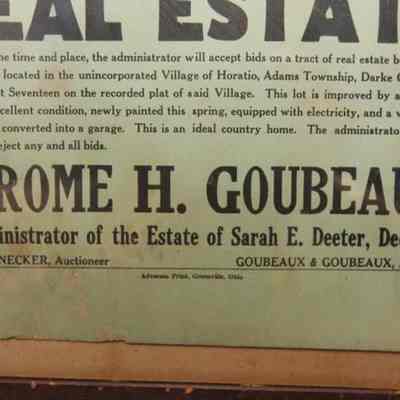 FR. 1937 OH ESTATE AUCTION BROADSIDE. 11X14". CHATTEL & REAL ESTATE. AUCTIONEER: D. LONGENECKER. ON-SITE VILLAGE OF HORATIO, ADAMS TOWNSHIP, DARKE COUNTY, OHIOCreated By
