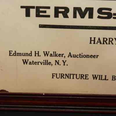 FR. NY FARM AUCTION BROADSIDE. 12X17". AUCTIONEER: EDMUND H. WALKER WATERVILLE, NY. "TERMS: CASH."Created By