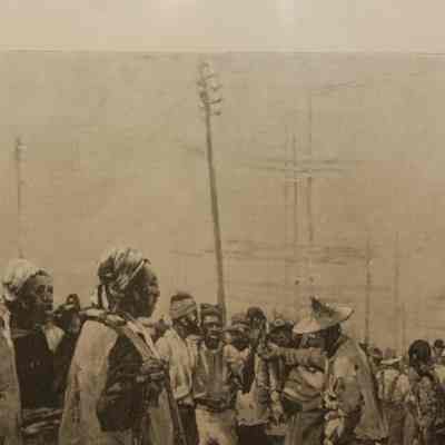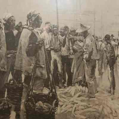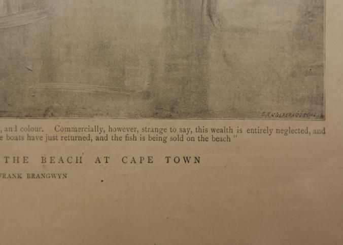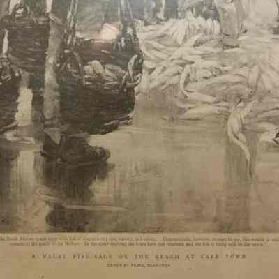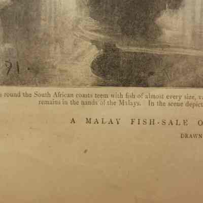 FR. 1894 WOODCUT ENGRAVING OF A FISH AUCTION IN CAPE TOWN S. AFRICA. A FULL PAGE FROM THE "GRAPHIC" MAGAZINE. 11X15 1/2".Created By