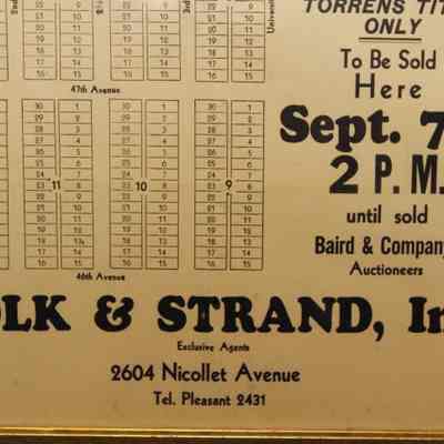 FR. BROADSIDE FOR AUCTION OF 320 HOMESITES. 12X18". BAIRD & COMPANY AUCTIONEERS. EARLY 20THC.