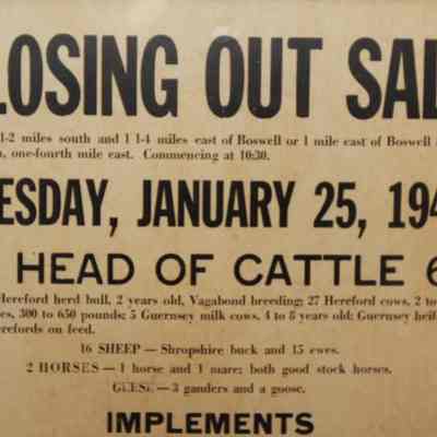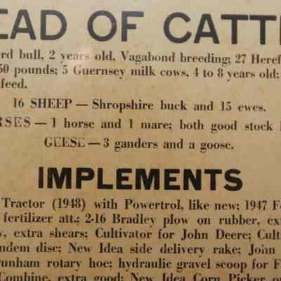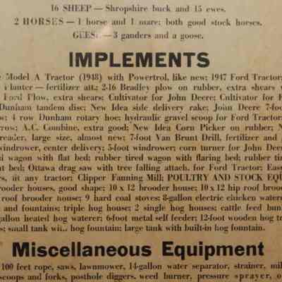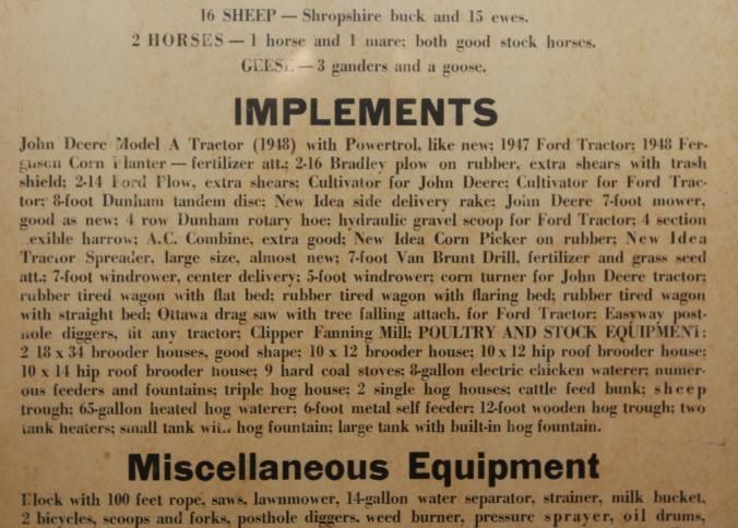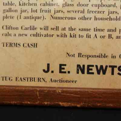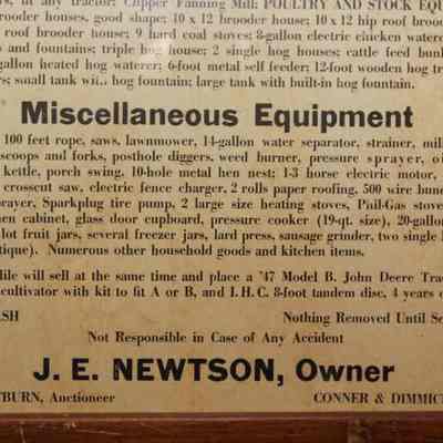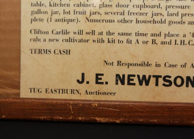 FR. 1949 CLOSING OUT SALE BROADSIDE. 11X17" AUCTIONEER TUG EASTBURN. NOTE THAT PART OF THE TERMS WERE "NOT RESPONSIBLE IN CASE OF ACCIDENT." AN INDICATION OF GROWING LITIGATION CONCERNS?Created By