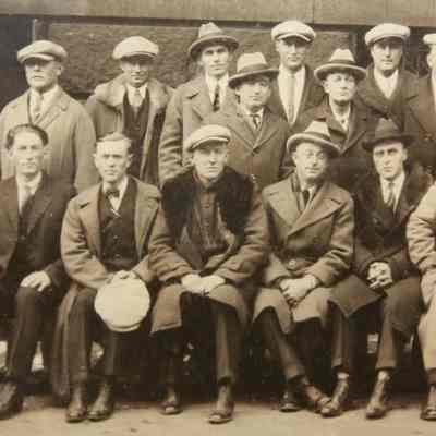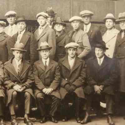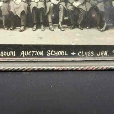 FR. PHOTO 1926 MISSOURI AUCTION SCHOOL CLASS. 6X15" SHOWING 40 MEN ALL BUT ONE WITH HATS, ALL WITH TIES, JACKETS AND COATS.Created By