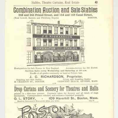ADV, REAL ESTATE, DIM. 5 3/4" x 9 1/8", HORSE, MA. BOSTON REAL ESTATE AND INSURANCE CO. BOTTOM AD, J.C. RICHARDSON, HORSE AUCTION AND SALE STABLES, TOP AD.Created By