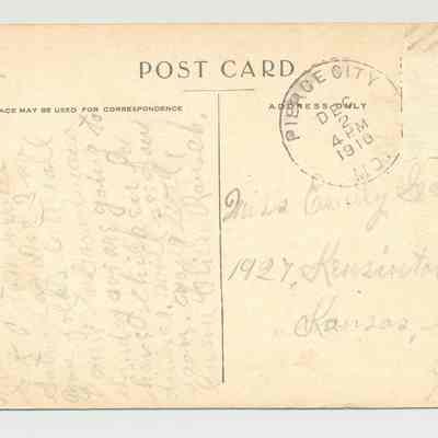 PSTCD, 1910, FARM, MO. "HARD LINES" PRINT OF FARM AUCTION, OWNERS LOOKING SAD