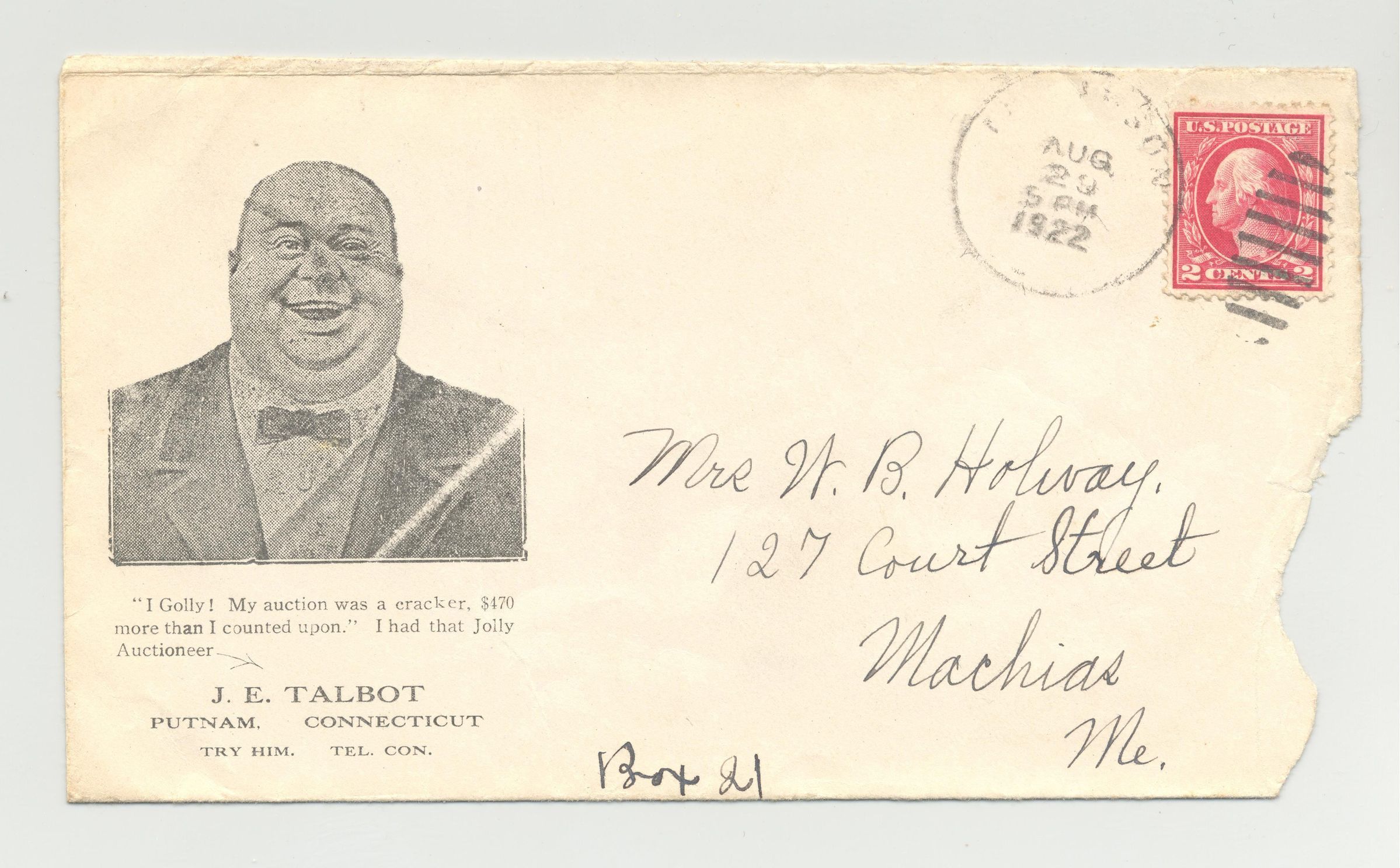 ENV, 1922, CT. J.E. TALBOT, AUCTIONEER. "I GOLLY! MY AUCTION WAS A CRACKER, $470 MORE THAN I COUNTED UPON." I HAD THAT JOLLY AUCTIONEERCreated By